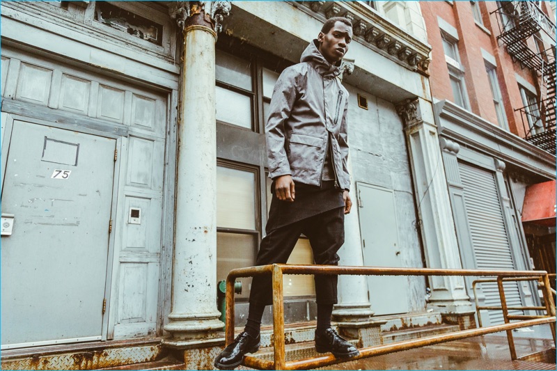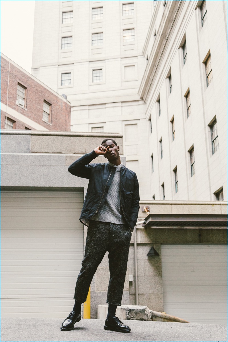 Matiere taps model Adonis Bosso to star in its fall-winter 2016 lookbook. Photographed by Driely S. Carter, Adonis models the label’s collection, while taking in the urban sights of New York City. Heading downtown, Adonis shows off the collection’s mix of contemporary style and texture. Inspired by the idea of migration, Matiere mixes fabrications for an experienced traveler. Here, natural and man-made materials come together with Italian virgin wool, crinkled jersey, woolen gauze plaids, kid mohair, and cashmere. Layering various proportions, Matiere achieves a decidedly modern aesthetic with a streetwear appeal.