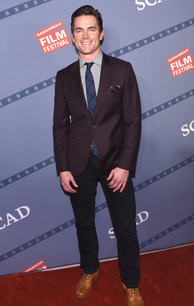 Pin‘White Collar’ and ‘Magic Mike’ actor Matt Bomer was the recipient of a special award this past weekend at the 17th annual Savannah Film Festival. Hitting the red carpet on October 26th, Bomer was honored with the Spotlight Award Tribute at Trustees Theater. For the occasion, Bomer mixed colors and prints. Worn with a dark wash pair of denim jeans and brown leather shoes, Bomer wore a check shirt with a plum jacket and navy plaid tie.