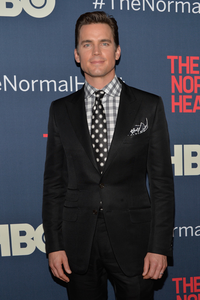 Matt Bomer in Tom Ford-Attending the New York City premiere of his latest movie, The Normal Heart, actor Matt Bomer was dashing in a black and white look from American designer Tom Ford. Hitting the red carpet at the Ziegfeld Theater, Bomer made a strong impression, mixing patterns for a standout look. Bomer also impresses in this month’s cover story from Out magazine.