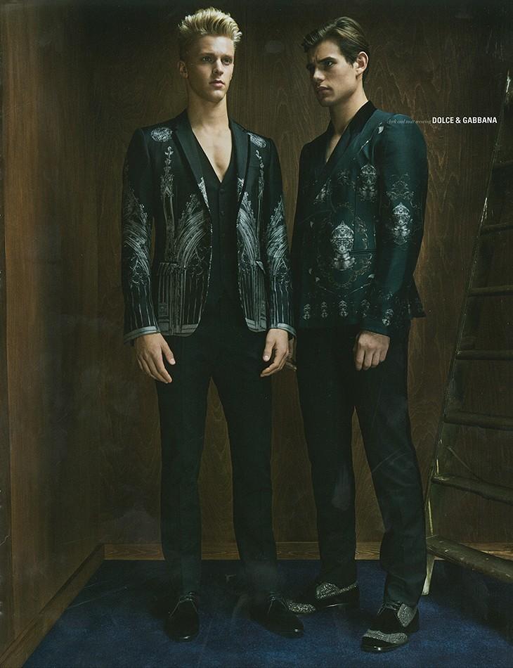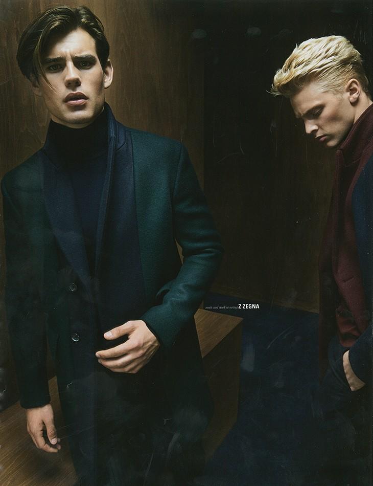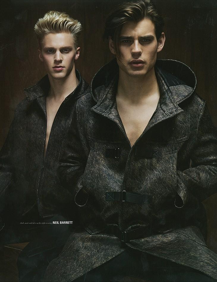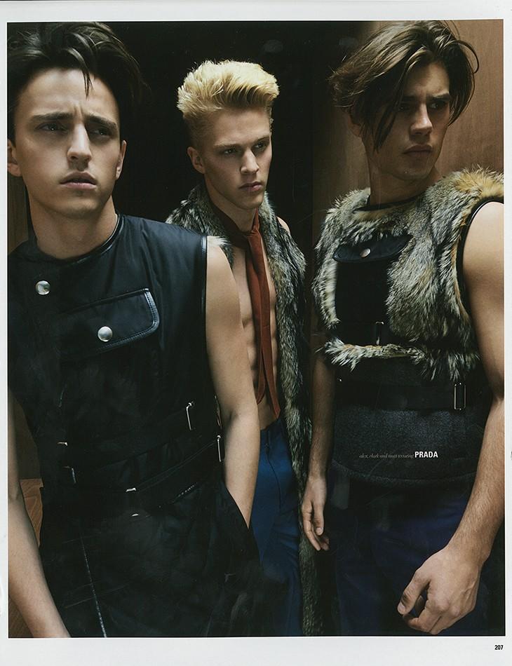 What’s New? For the latest issue of DSection, stylist Christopher Preston pulls together a wardrobe filled with next season’s most standout pieces, highlighting the biggest trends of the fall season. Wearing pieces from the likes of Versace, Givenchy and many more, models Matt Trethe, Alex Dunstan and Clark Bockelman appear before the lens of photographer James White, alternating fur-embellished pieces, black leather designs or the new luxury sportswear fashions. Matt Trethe also appears in the newly released Emporio Armani fall/winter 2014 campaign.