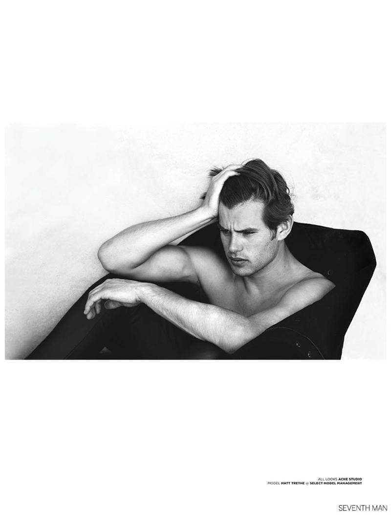Acne Studios Fall 2014 Highlights–Seventh Man embraces the ease of Swedish label Acne Studios, featuring pieces from its fall-winter 2014 collection in a fashion spread. Cast as the editorial’s protagonist, model Matt Trethe connects with photographer Lawrence Thomas and stylist Dean Hau. Essential styles ranging from tailored coats and bomber jackets to jeans come together for the relaxed outing.