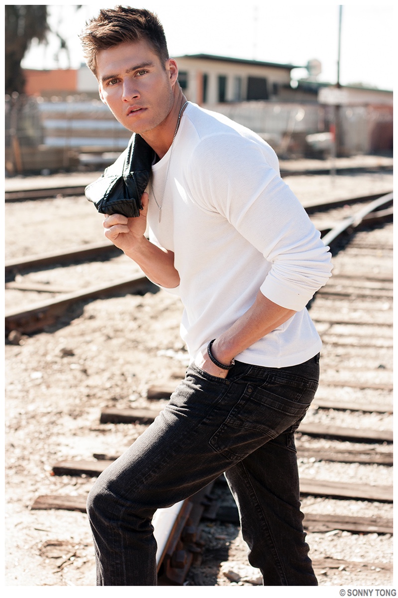 Photographer Sonny Tong unveils his latest model shoot featuring Two Management’s Matt Williams. Shot in sunny southern California, Matt heads outdoors to soak in the great weather. Posing for casual images, Matt delivers a relaxed outing, complete with youthful pieces that include a denim shirt, leather jacket and basic white tee.