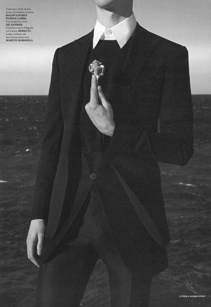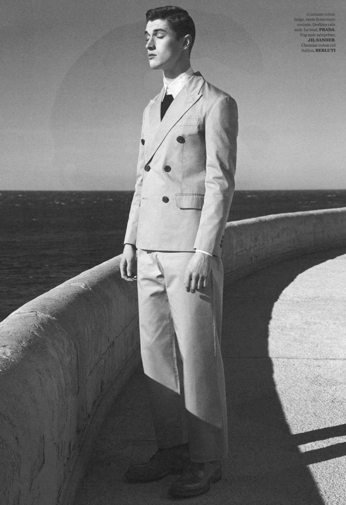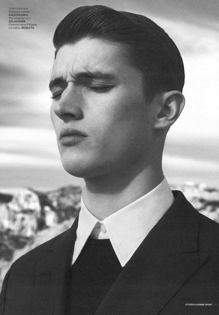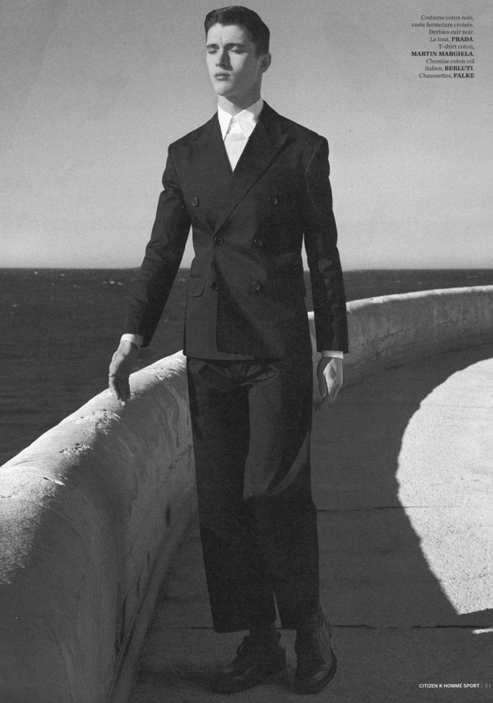 Spring Calm-Captured by the sea, Bananas model Matthew Holt stars in a new black & white story for Citizen K Homme Sport by photographer Matthieu Lavanchy. Wearing tailored suiting and accompanying pieces from Jil Sander, Prada, Berluti and other luxury labels, Matthew delivers a laid-back attitude, posing for images styled by fashion editor Jérôme André.