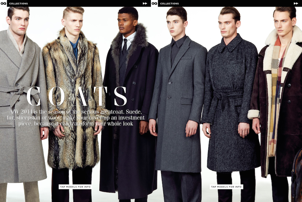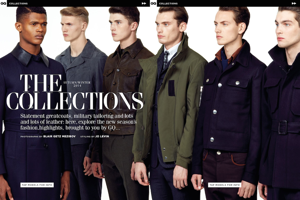 New Collections-The September issue of GQ UK gives us a preview of some of the boldest trends of the upcoming fall season. Photographed by Blair Getz Mezibov, models O’Shea Robertson, Harrison Griffith, Josh Wicks, Matthew Holt, Charlie Jones and Jakob Hybholt are styled by GQ’s Jo Levin in a desirable fall wardrobe that gives a full spectrum of what we’ll wear in the next months. From Canali’s Japanese inspired luxurious coats to Tom Ford’s glamorous brocades, including Dolce & Gabbana’s sartorial double-breasted suits and Prada’s extravagant furs, the fall collections have never looked so variegated, but at the same time focused on reinventing contemporary menswear. / Styling assistance by Holly Roberts. Hair by Ben Jones. Makeup by Lucy Bridge.