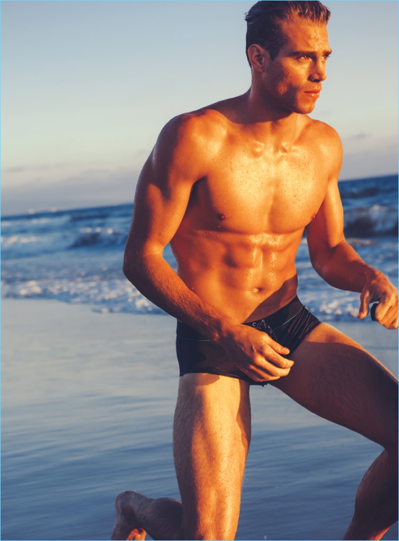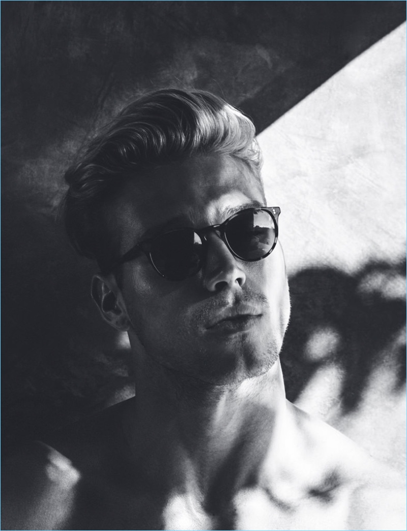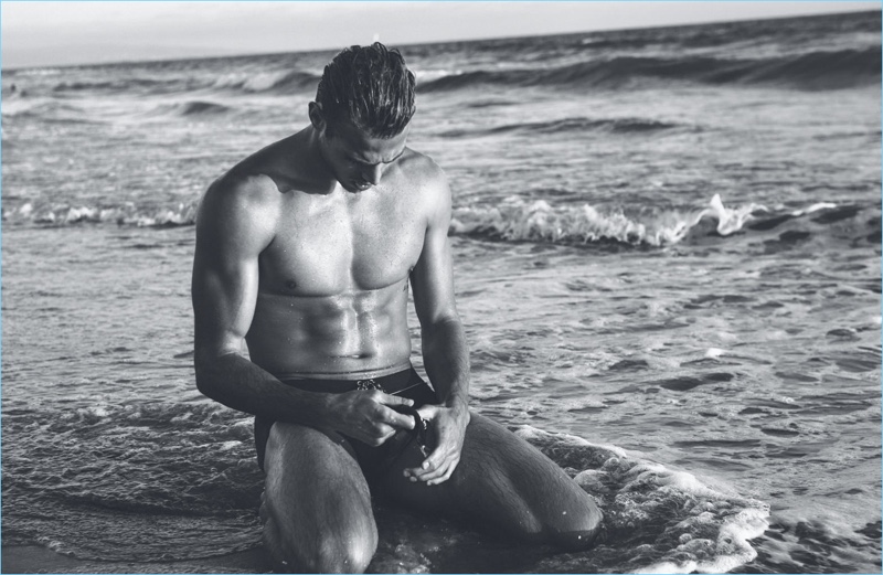 Appearing in an editorial for Wonderland, Matthew Noszka goes shirtless in a towel.