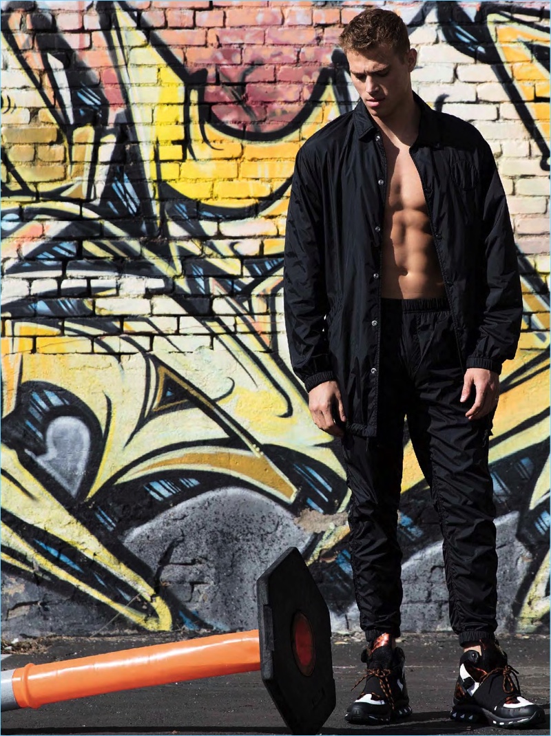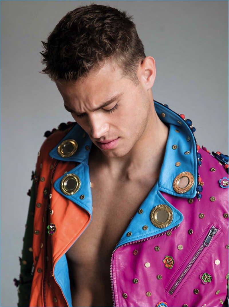 Matthew Noszka snags a new cover with the spring-summer 2017 issue of Da Man Style. Sporting bold styles, Matthew connects with photographer Mitchell Nguyen McCormack. The photographer collaborates with stylists Lauren Larocca and Oly Maly for the occasion. Front and center, Matthew wears brands such as Moschino and Martine Rose.