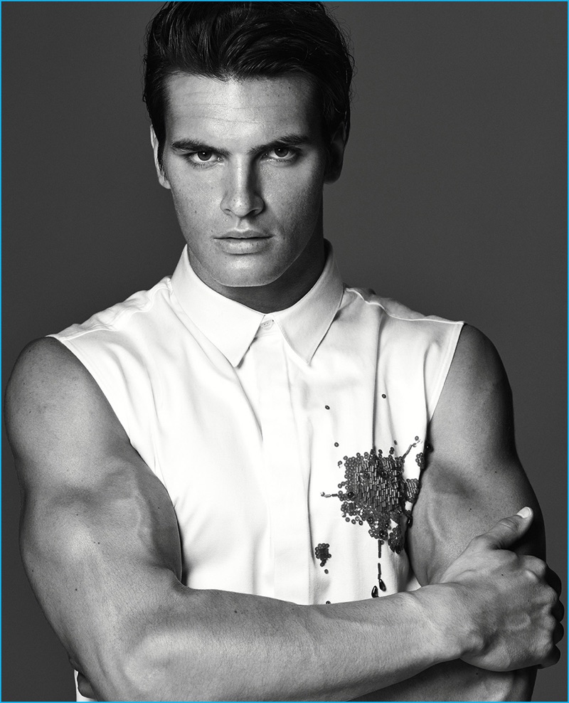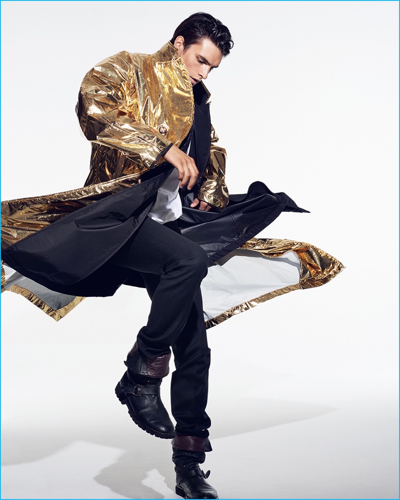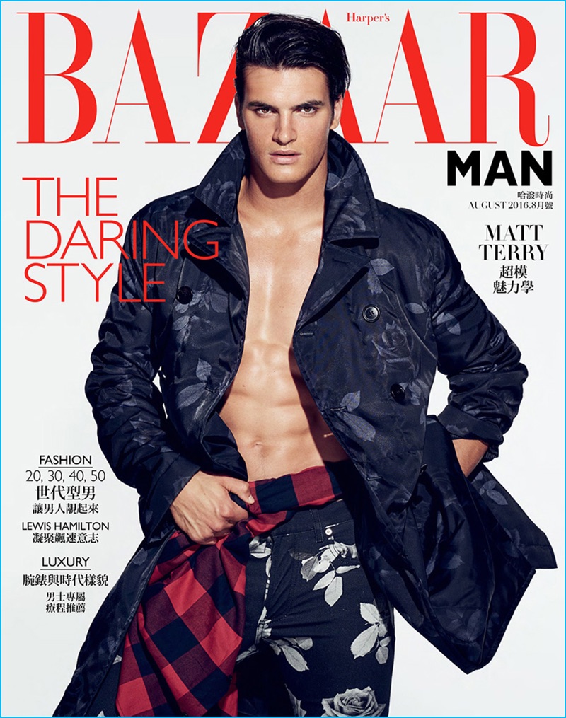 Photographed by Eric Ray Davidson, model Matthew Terry returns to the spotlight as he covers the August 2016 issue of Harper’s Bazaar Man Taiwan. The American model dons fall fashions styled by Michael Nash. Warming up to luxury brands, Matthew tackles eclectic style for the season. The top model is pictured in statement pieces such as Calvin Klein Collection’s metallic outerwear and Dior Homme’s rose prints.