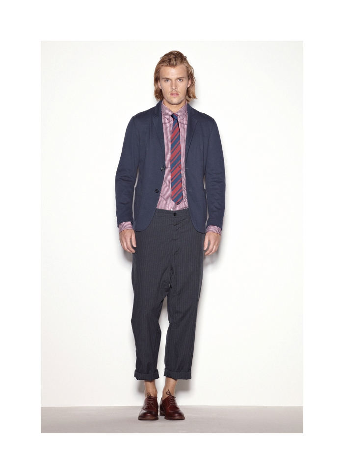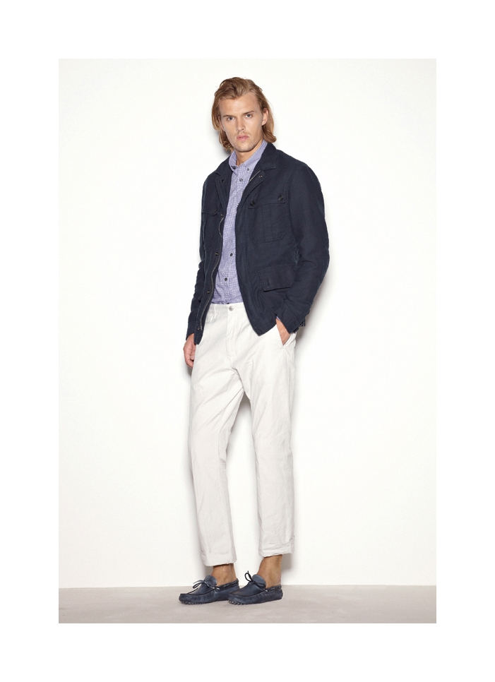 Mauro Grifoni gets a leg up on the new season with a short story featuring Ryan Thomas. Cutting trousers a hint above the ankle, employing elasticated finishes and embracing a great number of shorts, Mauro Grifoni creates the perfect match to a warm weather holiday. Both smart and striking, the collection takes a predictable spring lineup and adds an attractive appeal with bold modern cuts and fitted proportions.