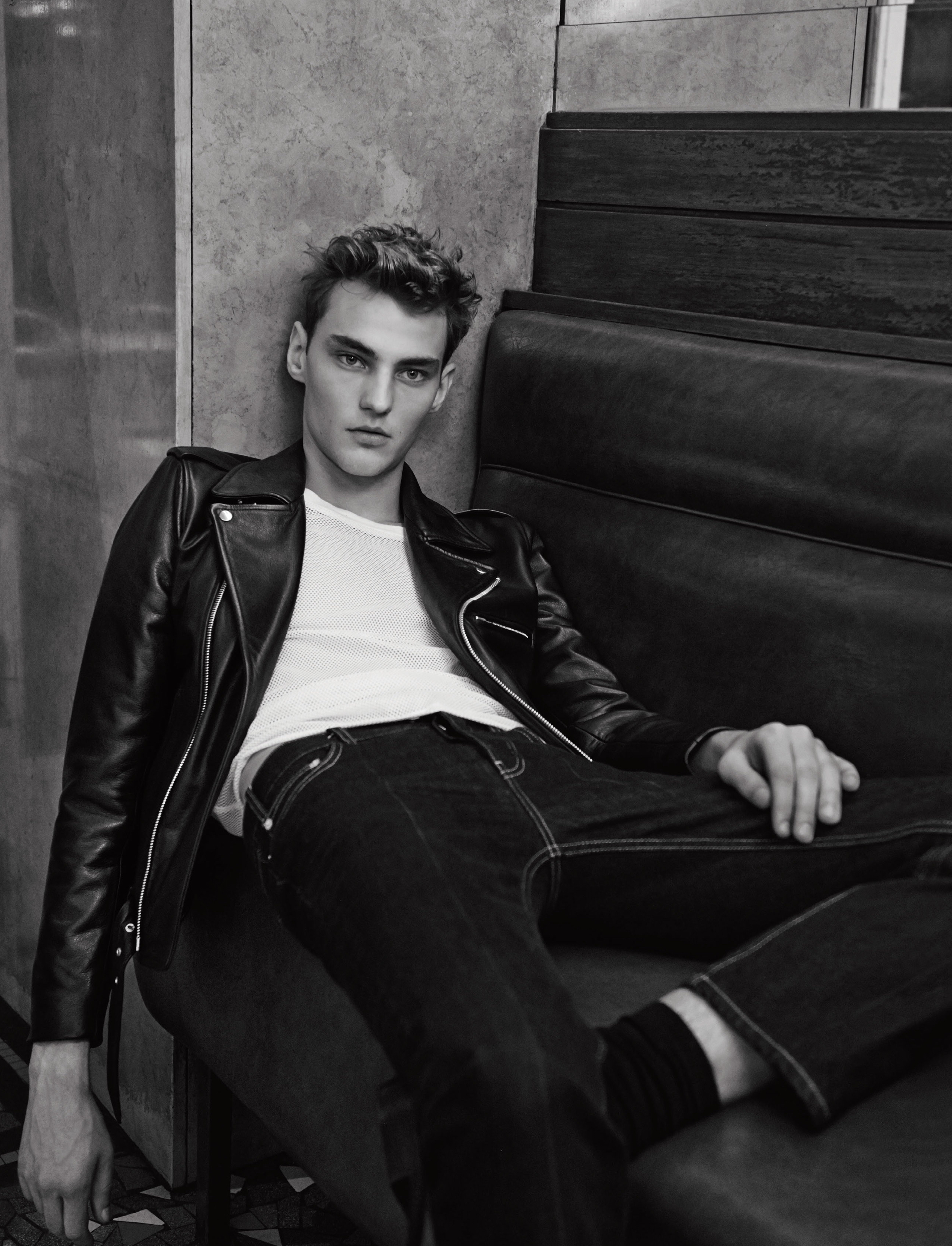 Model Max Esken takes a stab at a relaxed pose for the spring-summer 2015 campaign of Sandro. Shot for the Parisian label by Karim Sadli, Max adapts to his signature black & white photography with a comfortable ease as he dons Sandro essentials, which include the leather biker jacket and lean, denim jeans.