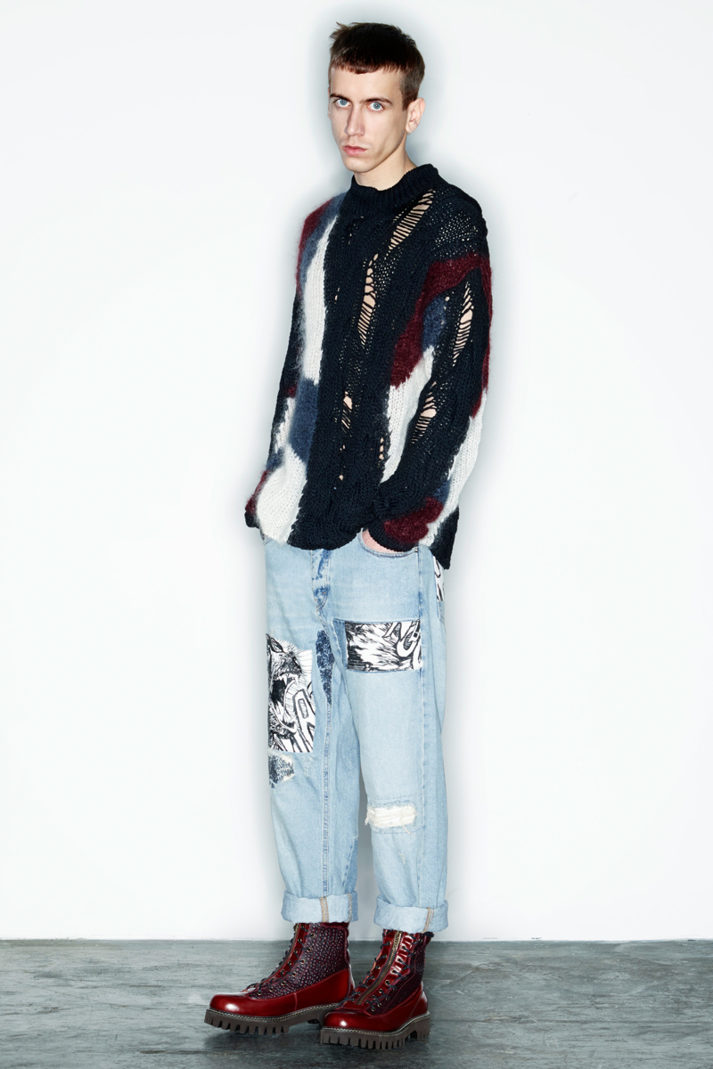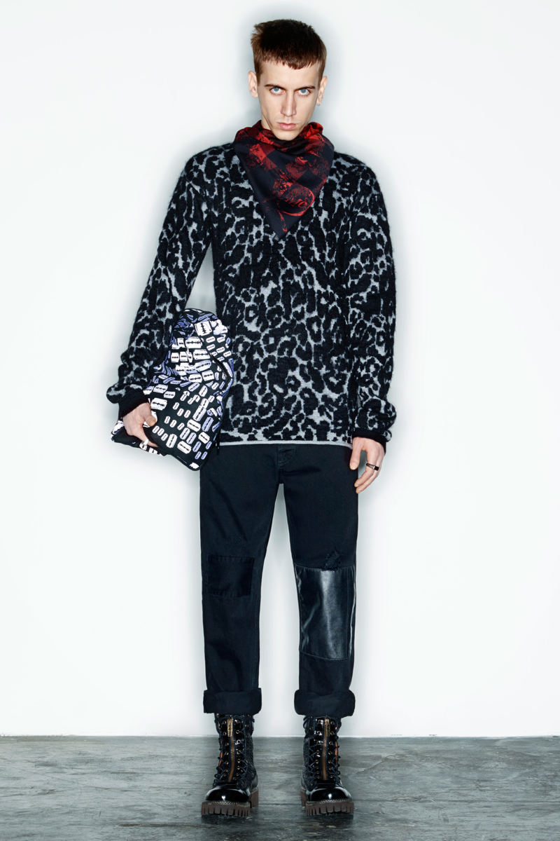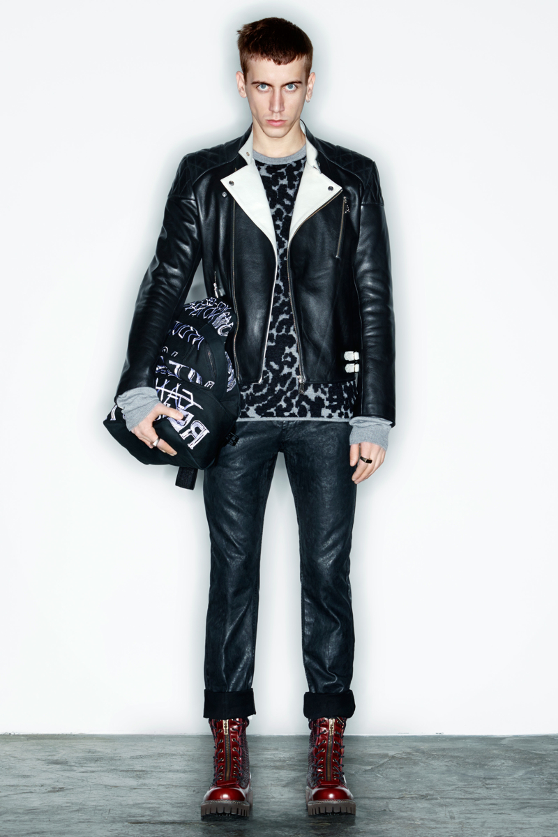 McQ by Alexander McQueen Fall/Winter 2014–McQ is the ideal label to channel your inner rebel. For its fall 2014 collection, the British labels uses a classic red and black color combination to dress a lineup of youthful separates. Combative in nature, the collection finds a strong voice for styles across the board. Whether you are looking for casual (think an oversized striped cardigan with skinny jeans featuring leather patches and a great pair of boots) or more formal (an impeccably tailored double-breasted coat), McQ has you covered. From deconstructed knitwear and cropped bomber jackets to leather tops, modern fashions are a breeze when done as effortlessly as McQ.