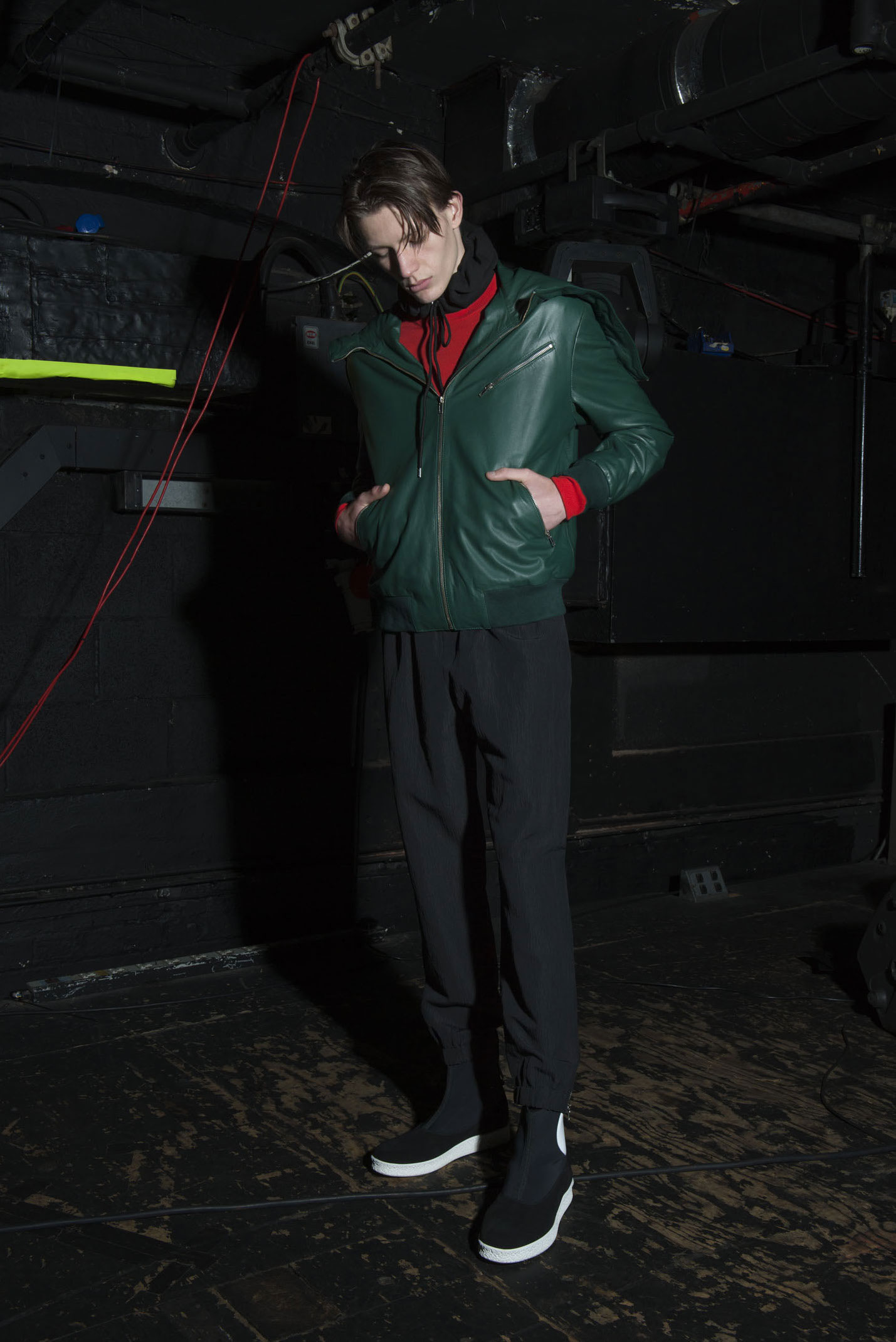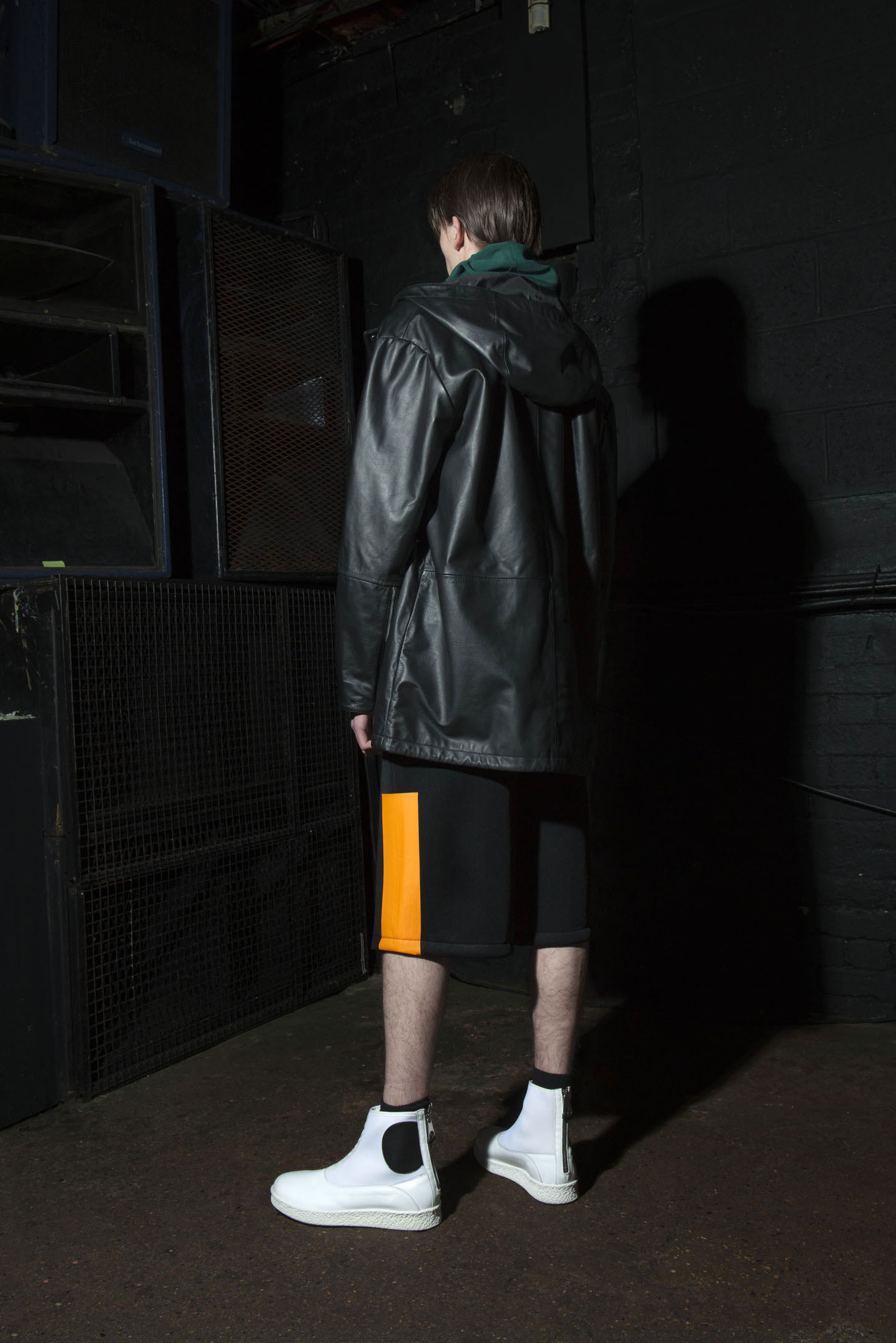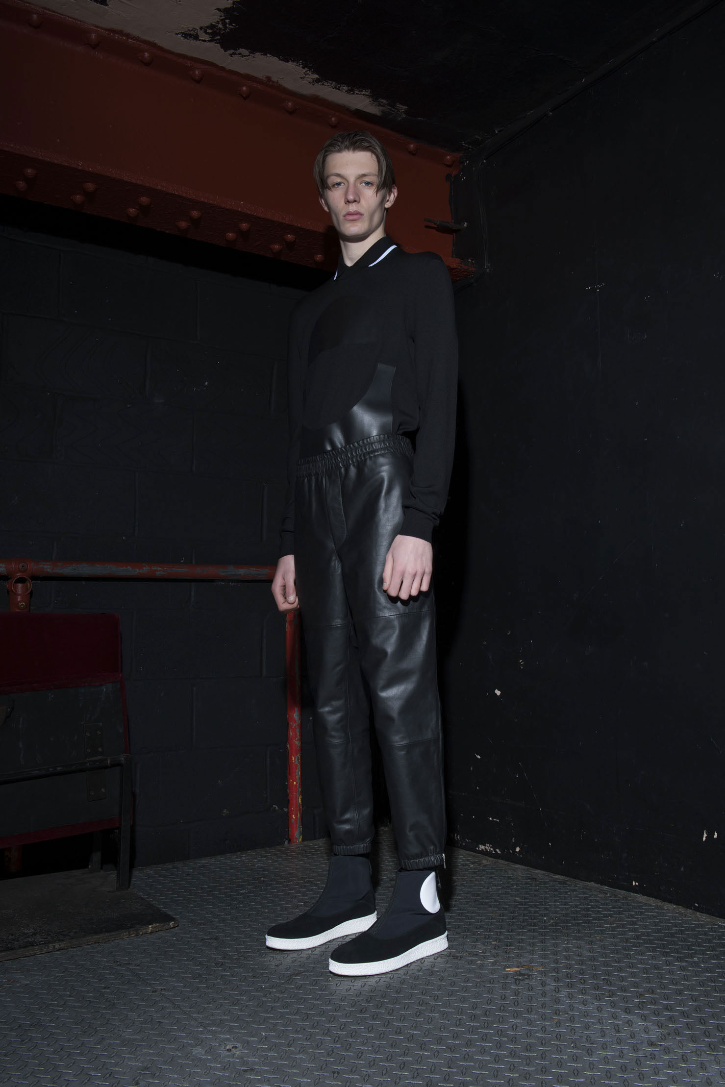 McQ brings a luxurious attitude to sporty fashions with the use of leather.
