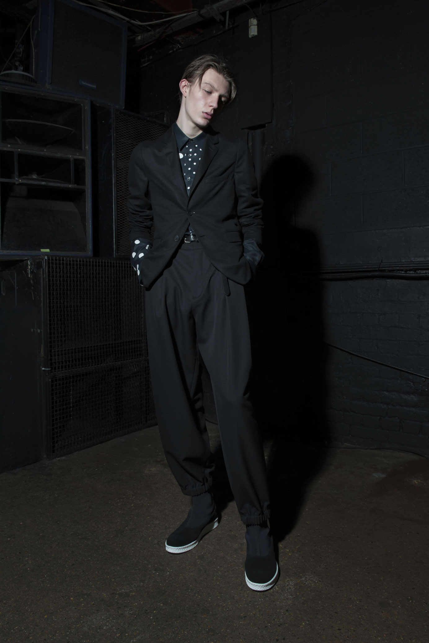 Polka dots are weaved into McQ’s black offering for pre-fall.
