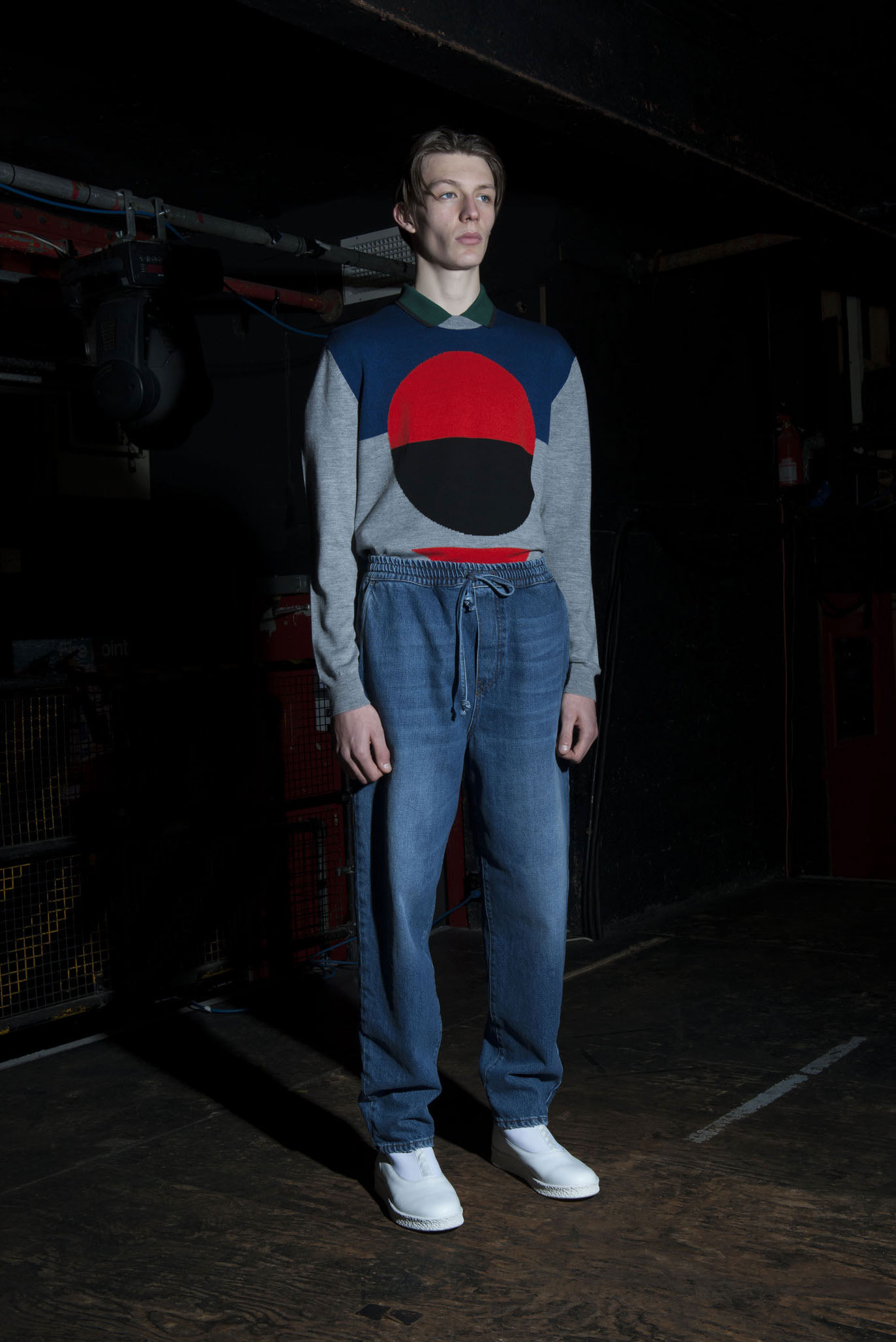 McQ does denim joggers for a casual pre-fall look.