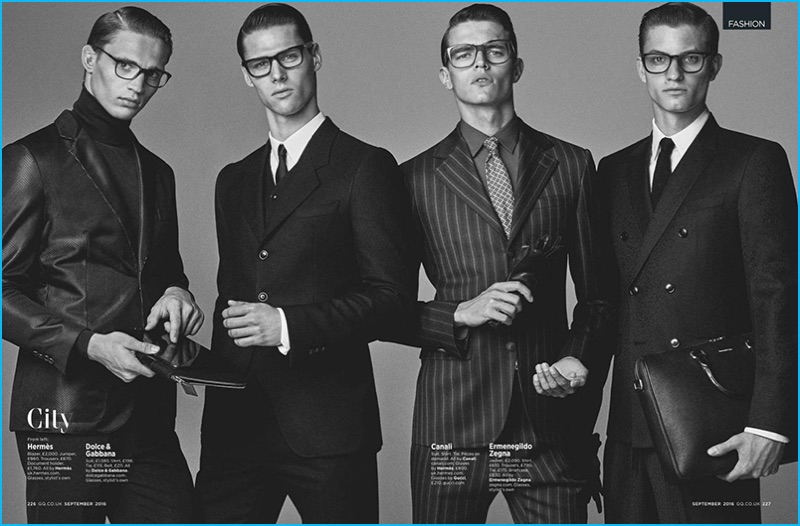 Sharp suiting comes together as British GQ makes a style proposal for a tailored City trend.