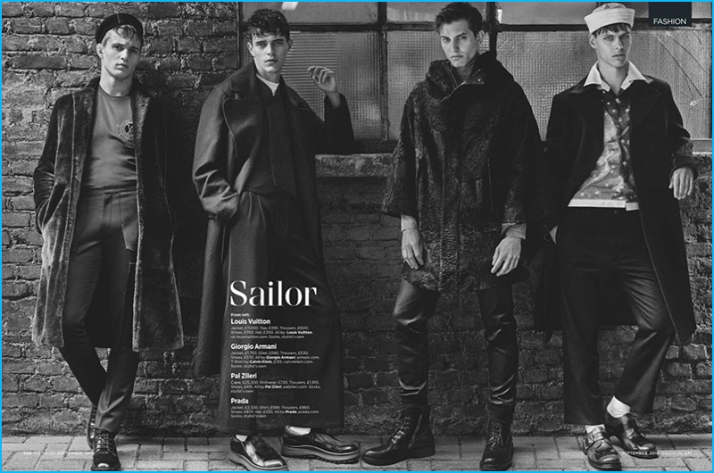British GQ follows tradition and taps into the latest trends for its September 2016 issue. Pulling highlights from the fall-winter 2016 collections, fashion editor Luke Day collaborates with photographer Giampaolo Sgura. Hitting the studio for an inspiring editorial shoot, models Julian Schneyder, Eric Bergmann, Benjamin Benedek, and Jordy Baan come together. Embracing an eclectic series of fashion trends, the models channel 1970s style and a skater cool in addition to a myriad of aesthetics.