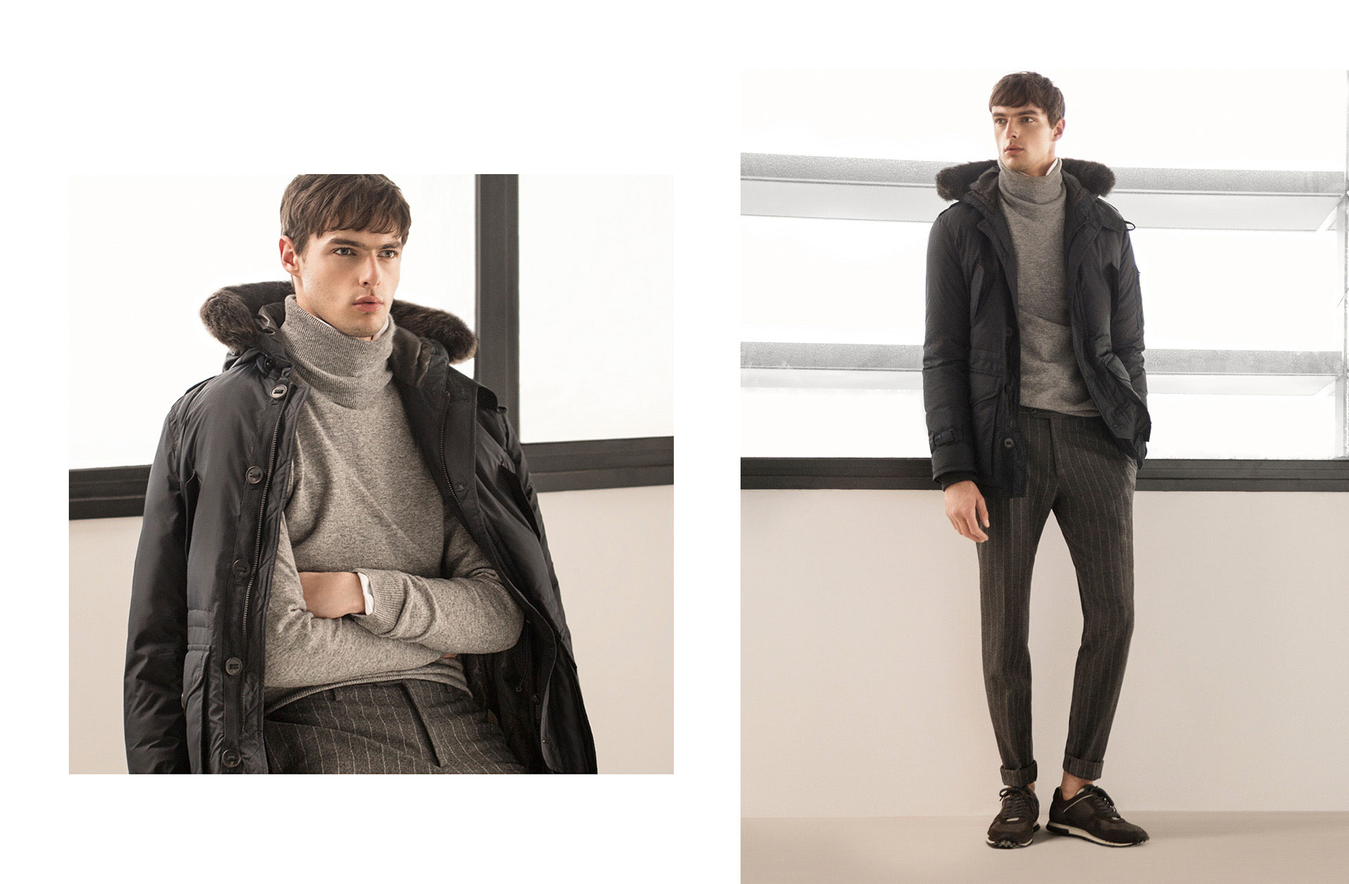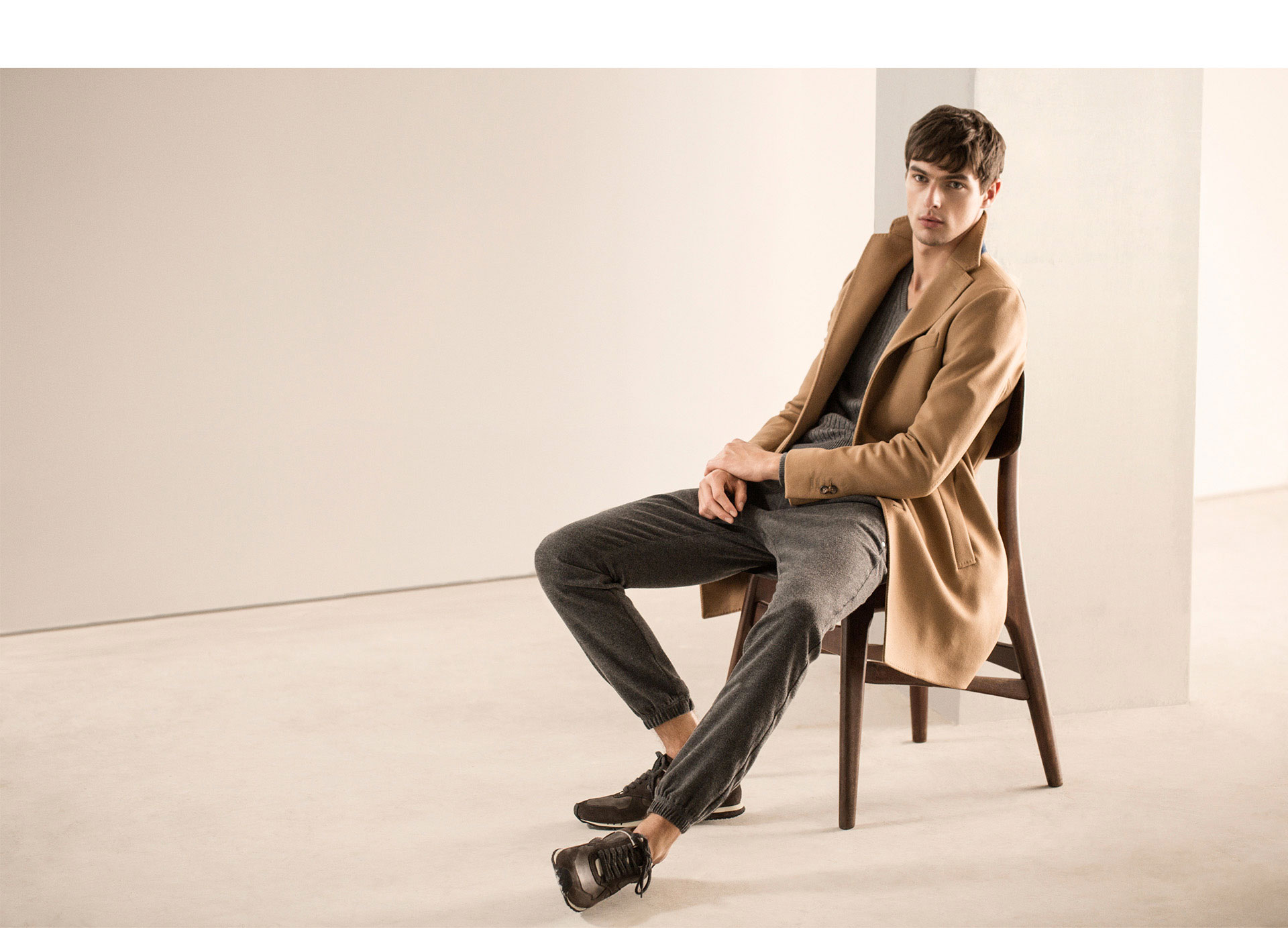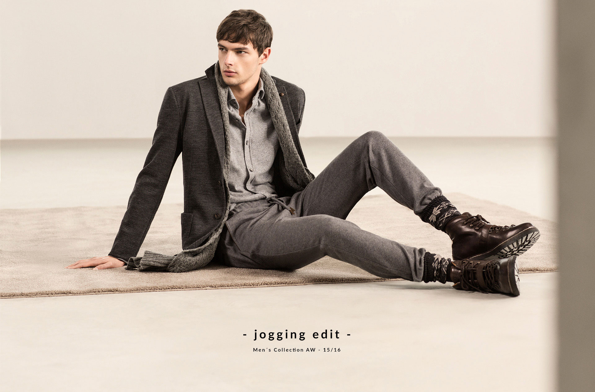 After a look at Massimo Dutti’s fall 2015 NYC Limited Collection, model Hannes Gobeyn reunites with the Spanish brand for a style guide to men’s joggers. Offering up inspiration for remixing your wardrobe with comfortable joggers, Massimo Dutti shows how to wear the modern essential with chic staples such as the cardigan. Going gray, joggers are paired with smart shirts, tailored blazers and knitwear.
