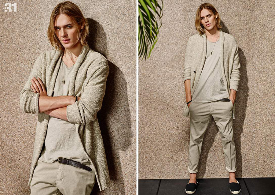 Following a casual summer style outing, model Ton Heukels is featured in another shoot from Canadian retailer Simons. The focus is once again on Simons’ Le 31 label as Ton embraces an affinity for monochromatic dress. Neutrals are front and center for the occasion with a strong selection of modern separates. Le 31’s trendy proportions easily mirror the latest collections off the catwalk. Built around knitwear and slouchy tops, effortlessly chic ensembles inspire.