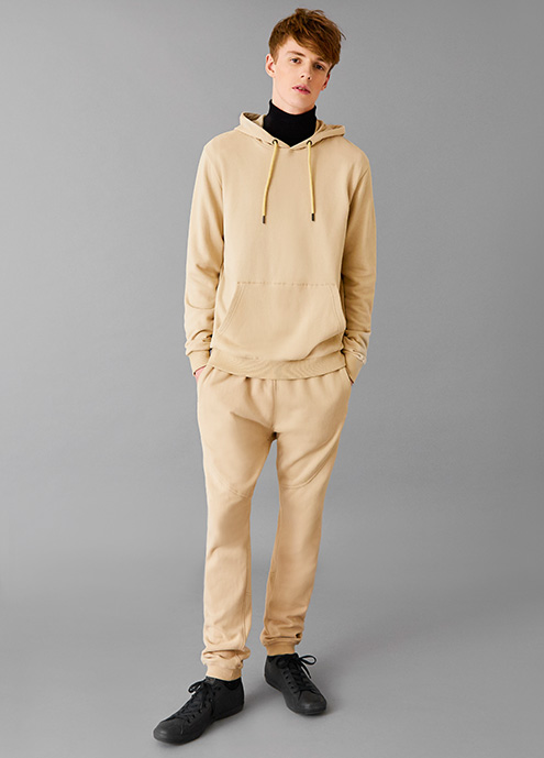 The Warm Neutral: Topman embraces sandy, caramel hues for a pleasant update on stylish neutrals. Here, the warm color palette is applied to leisurewear that includes joggers and the hooded sweatshirt.