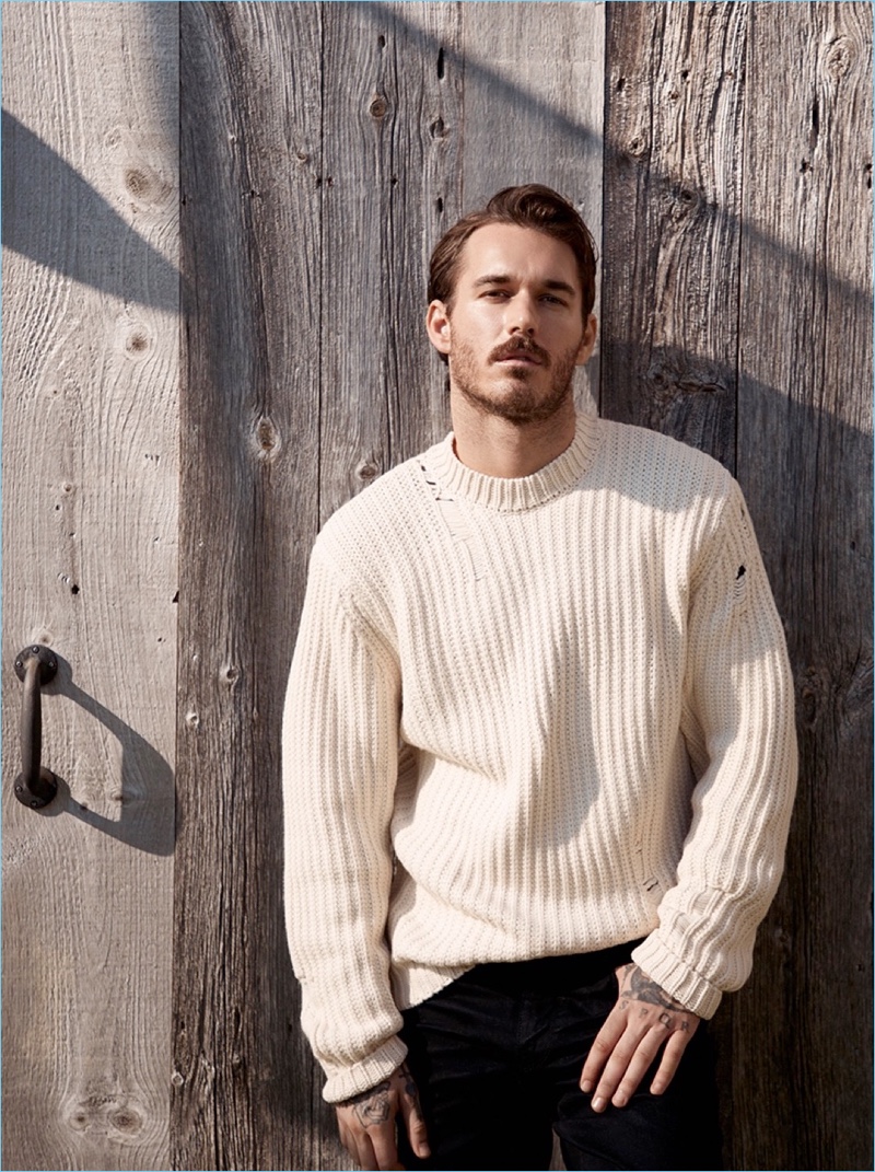Simons turns its attention to knitwear with its latest style guide for fall-winter 2018. The retailer enlists the help of model and artist David Alexander Flinn for the occasion. Heading outdoors, David brushes up on a rugged sensibility. Front and center, he dons must-have cardigans and sweaters from Simons’ in-house brand LE 31. He also sports key pieces such as denim from Levi’s. Inspiring to say the least, Simons’ selection of knitwear includes houndstooth, check, and striped prints.