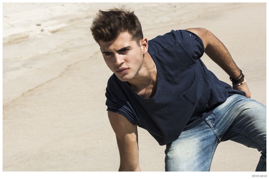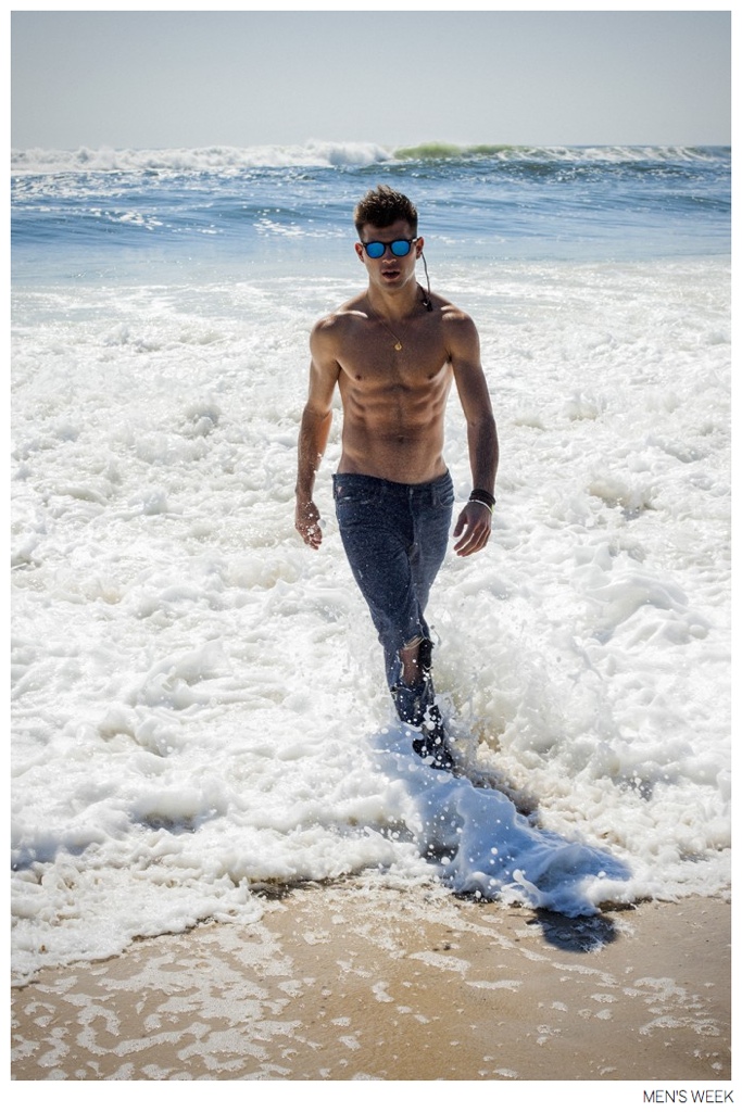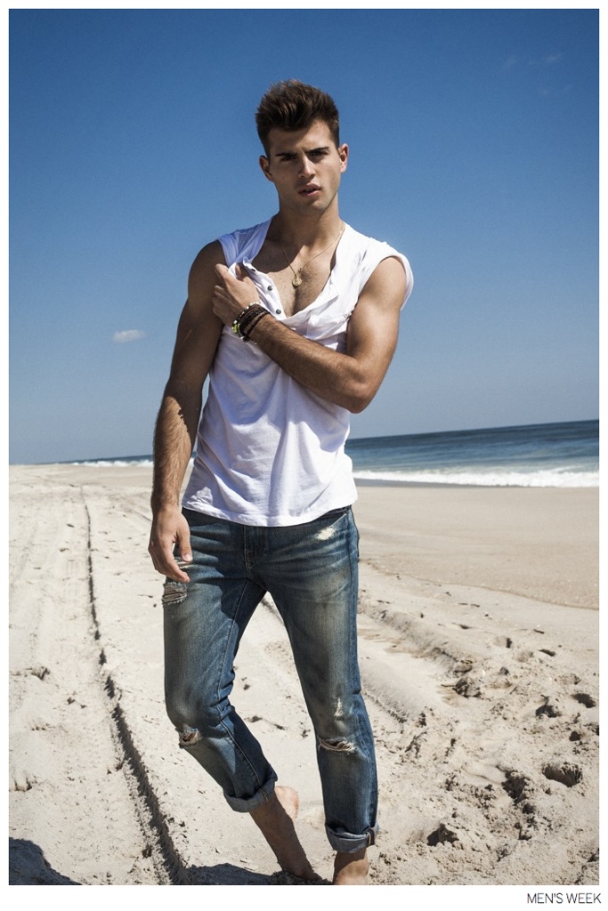 Denim Wave-When it comes to WWD property Men’s Week, it’s never to soon to take a look at the next season and fashion editor Alex Badia does just that with his latest story. Hitting the beach, Badia teams up with photographer Greg Vaughan and model Humbert Clotet for a look at the spring 2015 denim trend. Embracing classic washes for a worn-in look, Badia features the latest denim from Calvin Klein Jeans, Levi’s and more.