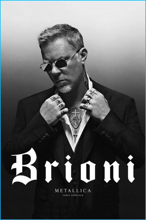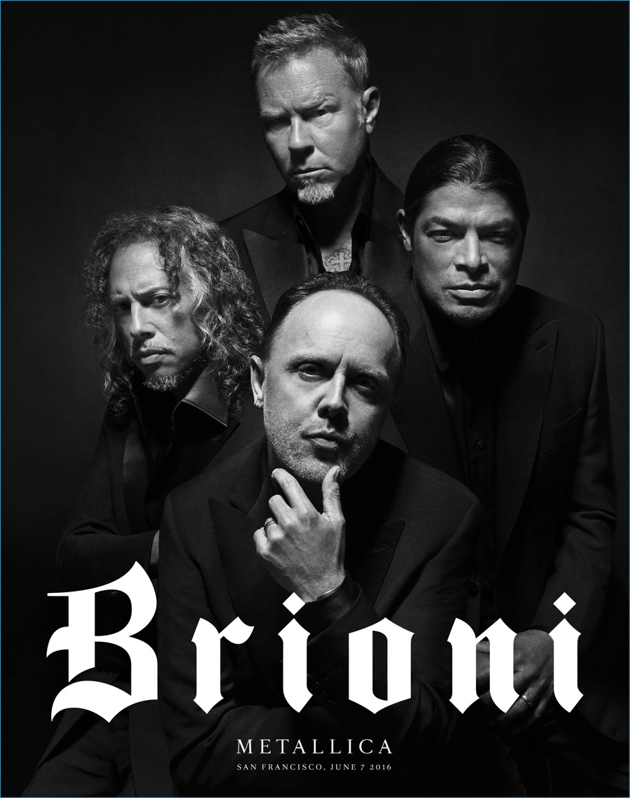 Metallica dons black suiting for Brioni’s latest advertising campaign.