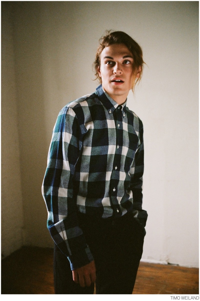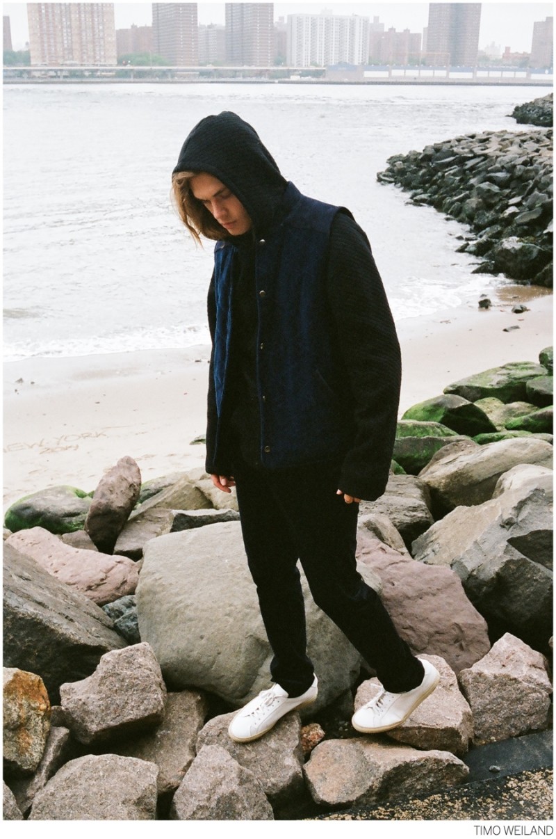 Timo Weiland Fall 2014 Campaign-Model Michael Bailey-Gates fronts the fall 2014 campaign of New York-based label Timo Weiland. Photographed by Mike Spears and styled by Haley Loewenthal, Michael perfectly encompasses the relaxed, young attitude of the fashion brand. Captured outdoors around New York, Michael wears a selection of easy essentials that include knitwear, button-downs and lightweight jackets. / Hair by Joseph DiMaggio. Makeup by Jenny Smith.