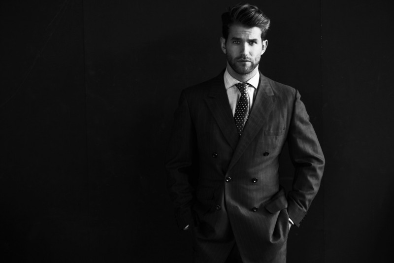 Hamann Out Front-From overcoat and double-breasted blazer to stylish braces, Kult model André Hamann embraces a dapper mode for his latest images. Photographed by Michael Brus, André poses both indoors and outside for the ultimate portrait.