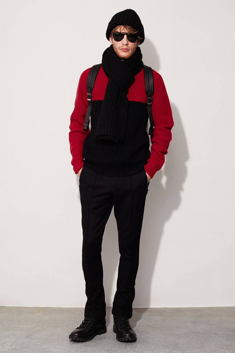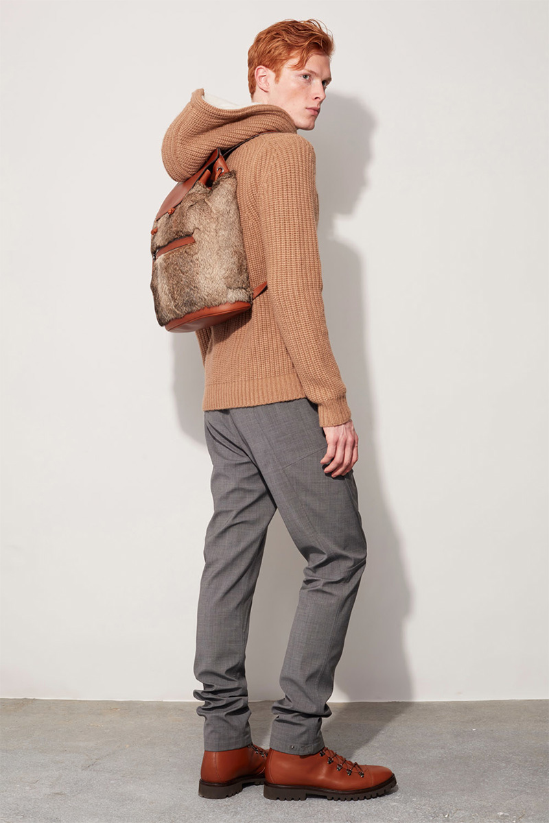Embracing classics such as the cableknit turtleneck and cardigan sweater, Kors delivered fitted silhouettes, paired with slim-cut trousers. On the outerwear front, peacoats and puffer outerwear were joined by the collection’s hero piece–the fur coat. Executing a long coat in rabbit, Kors honed in on the ultimate luxury statement.