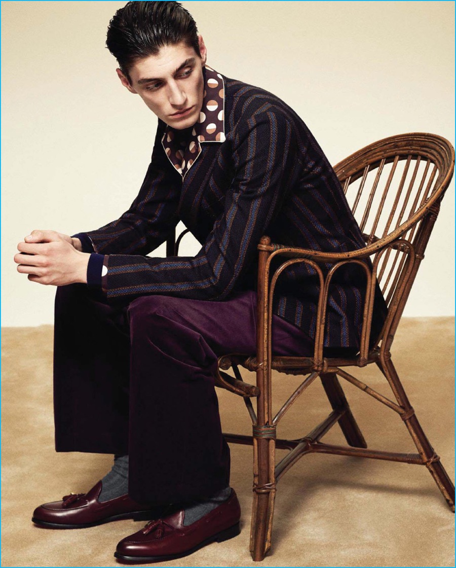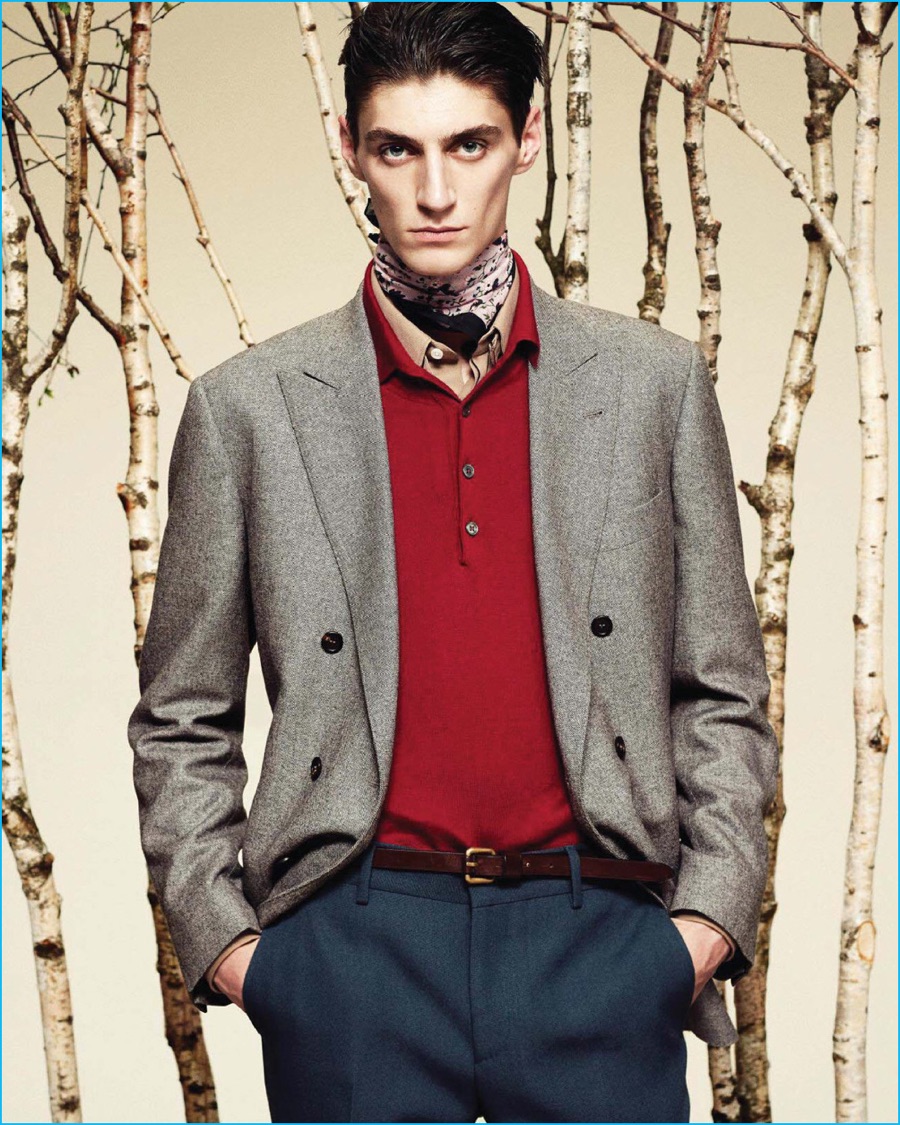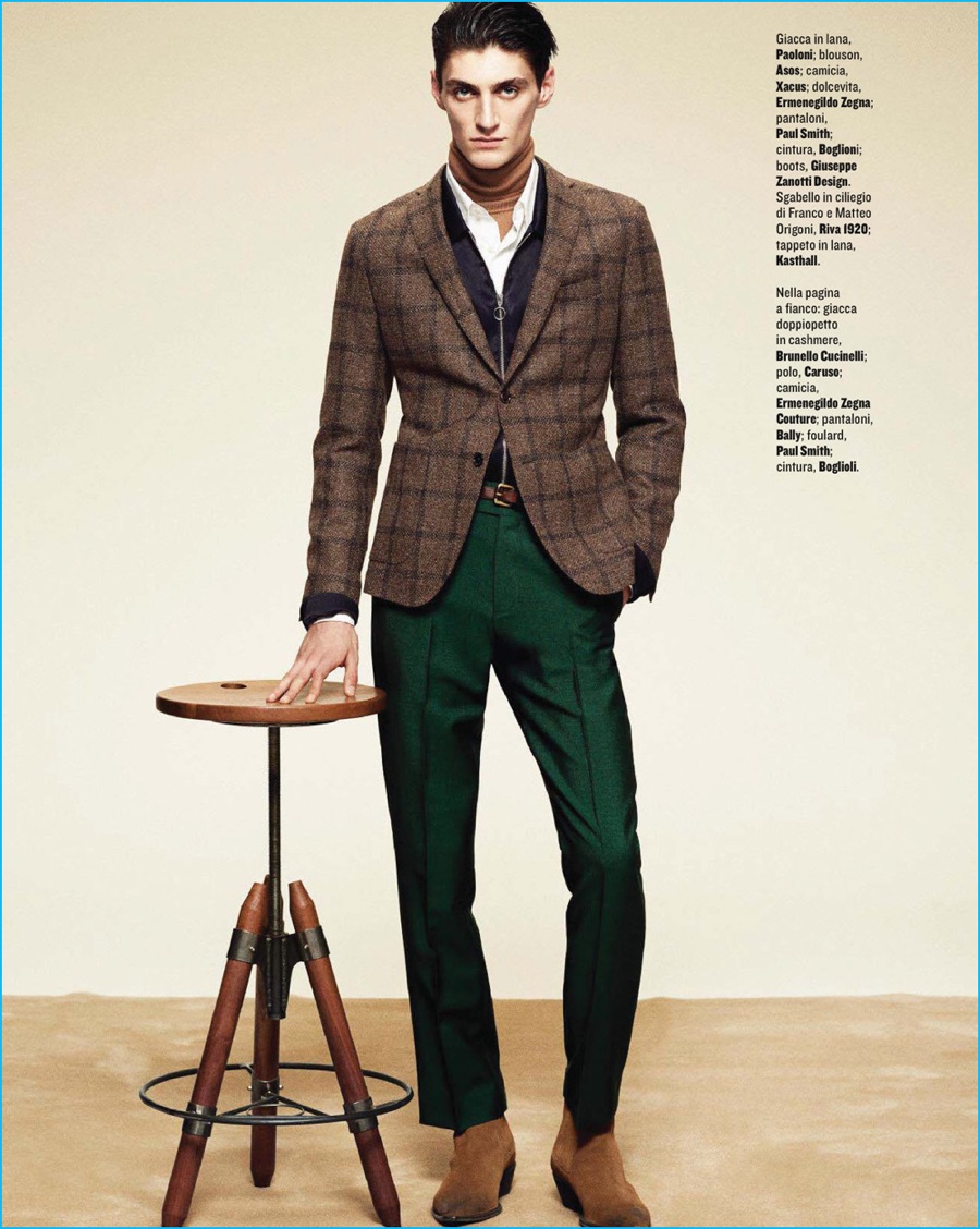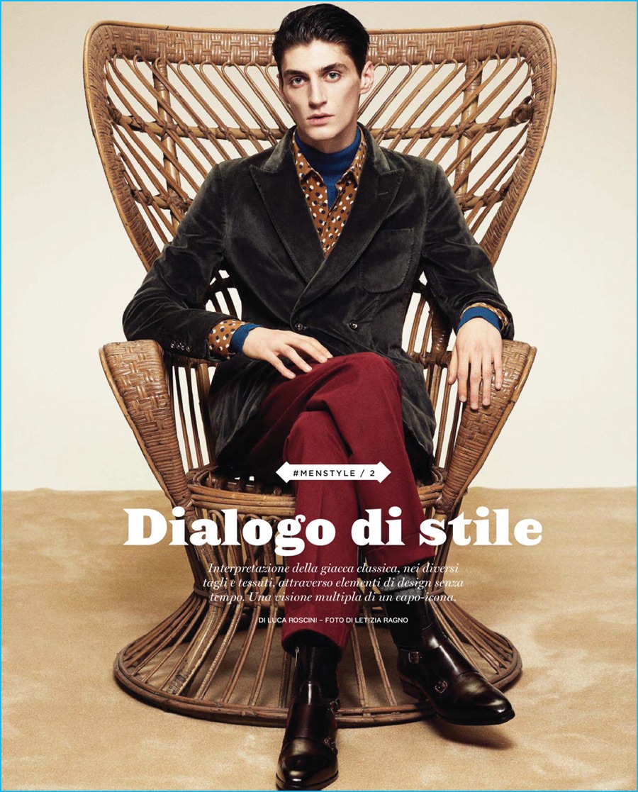 Style Italia tackles men’s tailoring for a fashion editorial by photographer Letizia Ragno. Championing luxurious separates from brands such as Ermenegildo Zegna Couture, Bally and Caruso, stylist Luca Roscini outfits model Mihai Bran. Presenting a dapper fall wardrobe, the photo shoot features dynamic layers. Remixing the typical suit, patterned sportcoats are paired with polos, foulards, lightweight sporty jackets and dashing dress shirts.