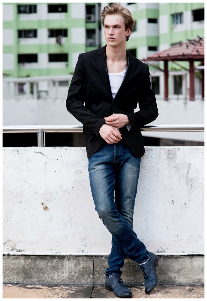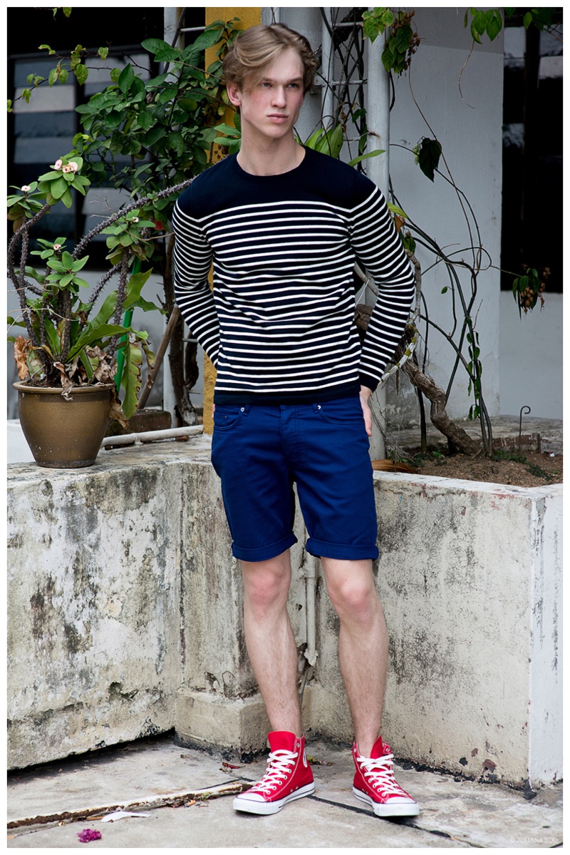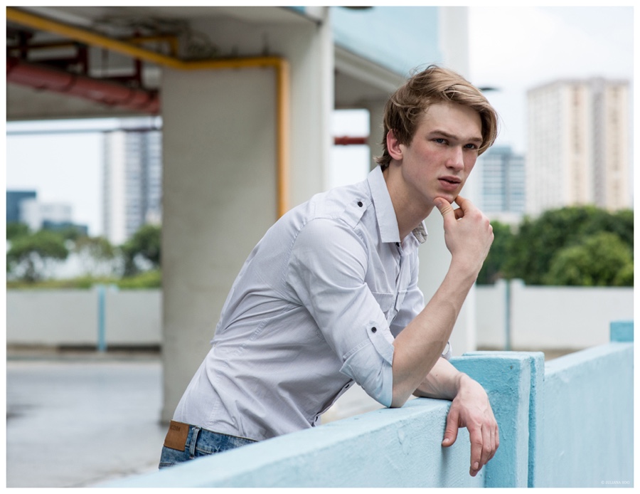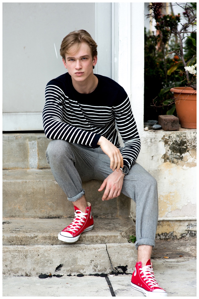 Gaga/Calcarries model Mikal is the star of a new shoot lensed by photographer Juliana Soo. Also outfitted by Soo, Mikal wears a casual spring wardrobe from Swedish brand H&M. Posing for photos outdoors, Mikal embraces a youthful, boyish style.