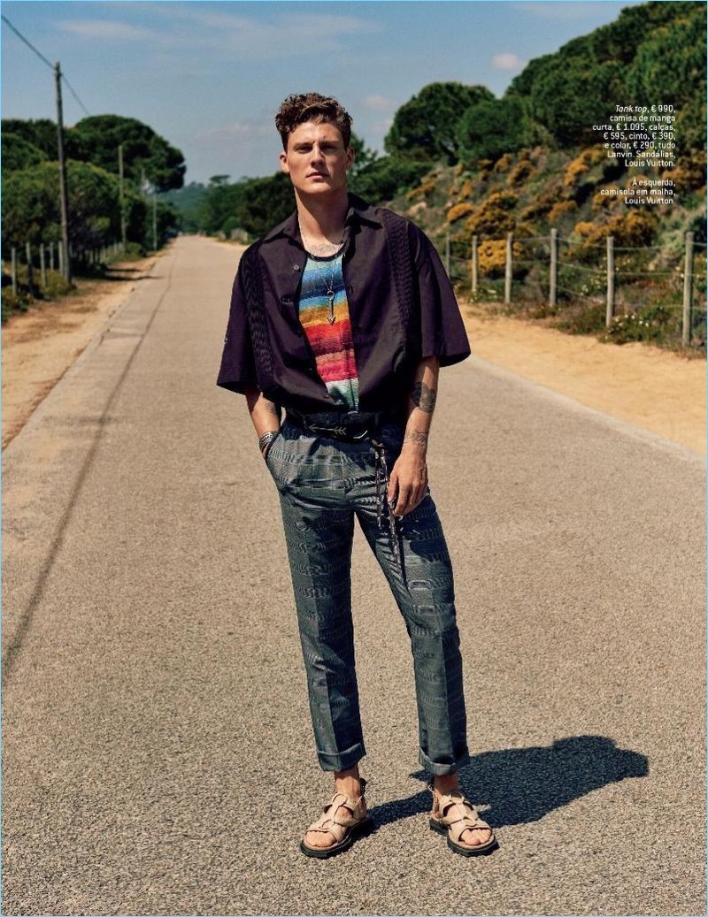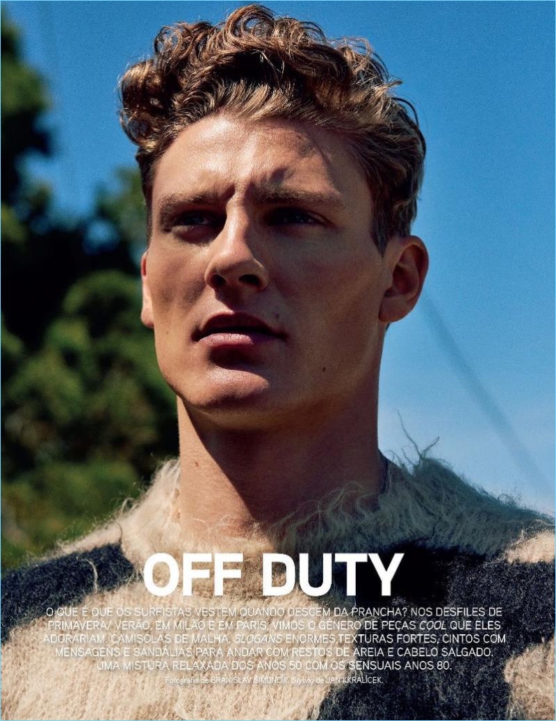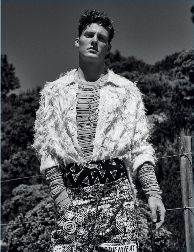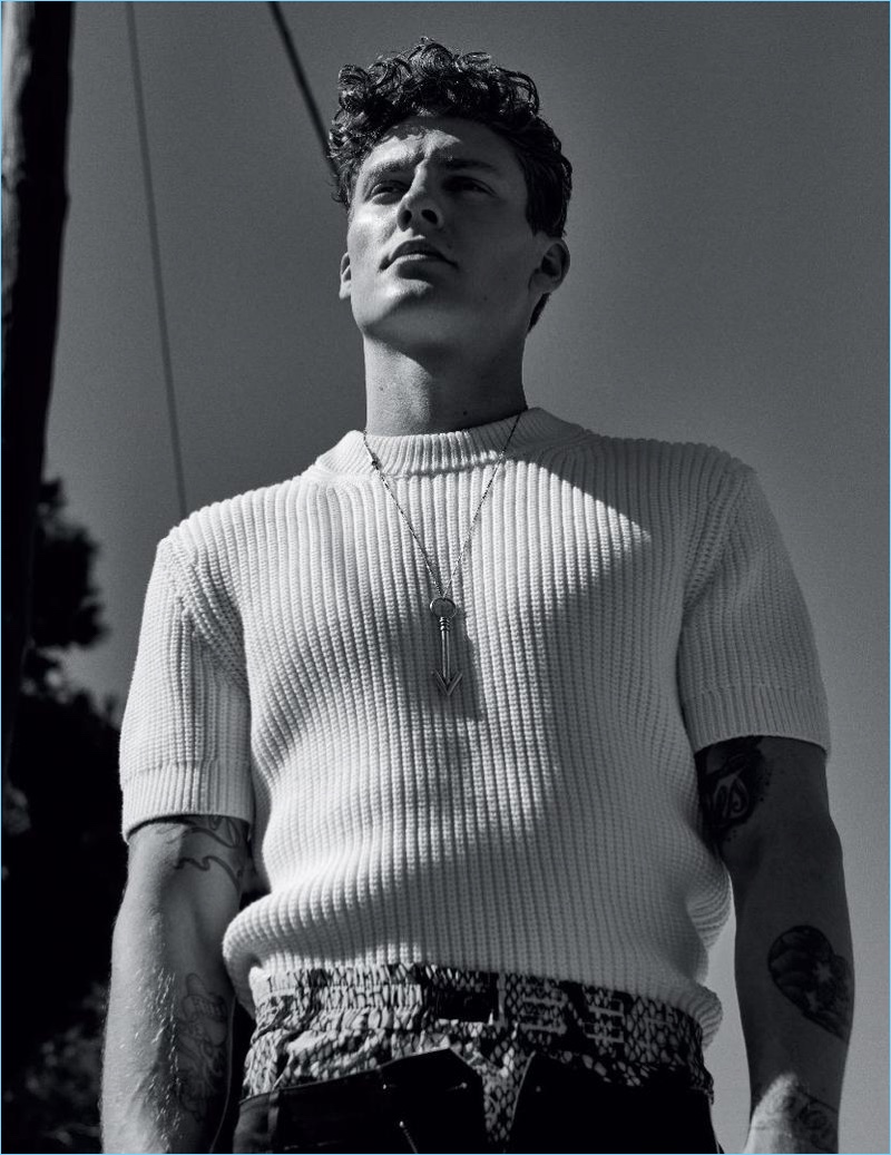 Mikkel Jensen shines in a new fashion editorial. The Danish model stars in a story for GQ Portugal’s May 2017 issue. Collaborating with the magazine, photographer Branislav Simoncik once again connects with stylist Jan Kralicek. Heading outdoors for an inspiring spring shoot, Mikkel wears fashions from the likes of Versace and Stella McCartney. Kralicek focuses on the more casual side of the season with lightweight knits, easy tees, shorts, and more.