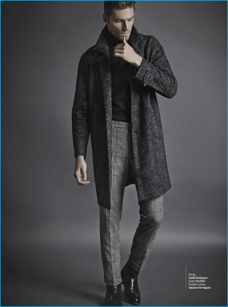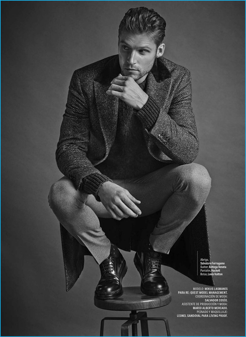 Mikus Lasmanis stars in a new editorial for the November 2016 issue of GQ México. The Latvian model hits the studio with photographer Pablo Valero in sleek fall looks. Here, stylist Fernando Carrillo hones in on designer coats. Clean lines and sharp tailoring define the season with standouts from brands such as Burberry and Tommy Hilfiger. Mikus also sports choice sweaters, pleated trousers, and cold weather accessories.