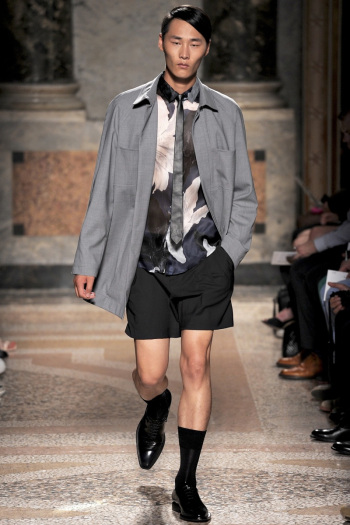 Balanced, Les Hommes blends in a more subtle graphic print paired with minimalist, deconstructed layering.