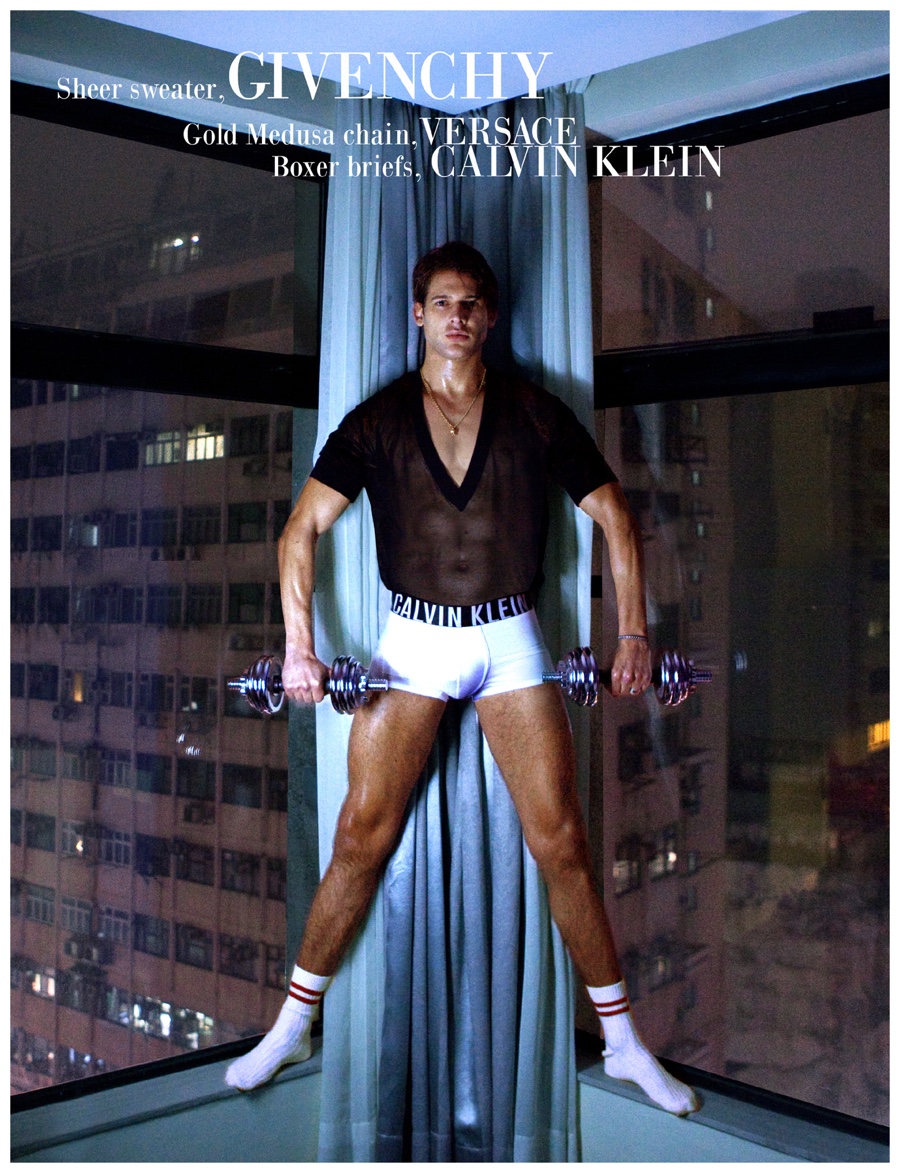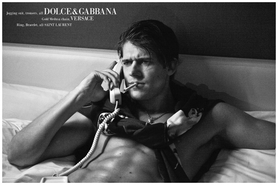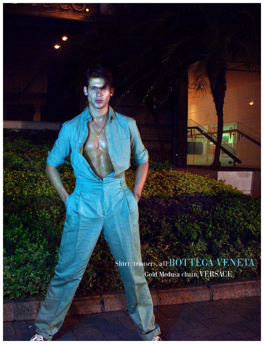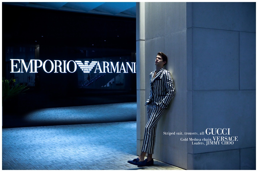 Photographer Baldovino Barani approaches the popular concept of the gigolo as he unveils a cheeky photo shoot featuring model Milan Petruska (Talent Man). Wearing eclectic styles pulled together by Bhisan Rai, Milan is pictured in both sporty and dapper situations featuring brands such as Calvin Klein and Bottega Veneta. / Grooming by Karen Yiu.