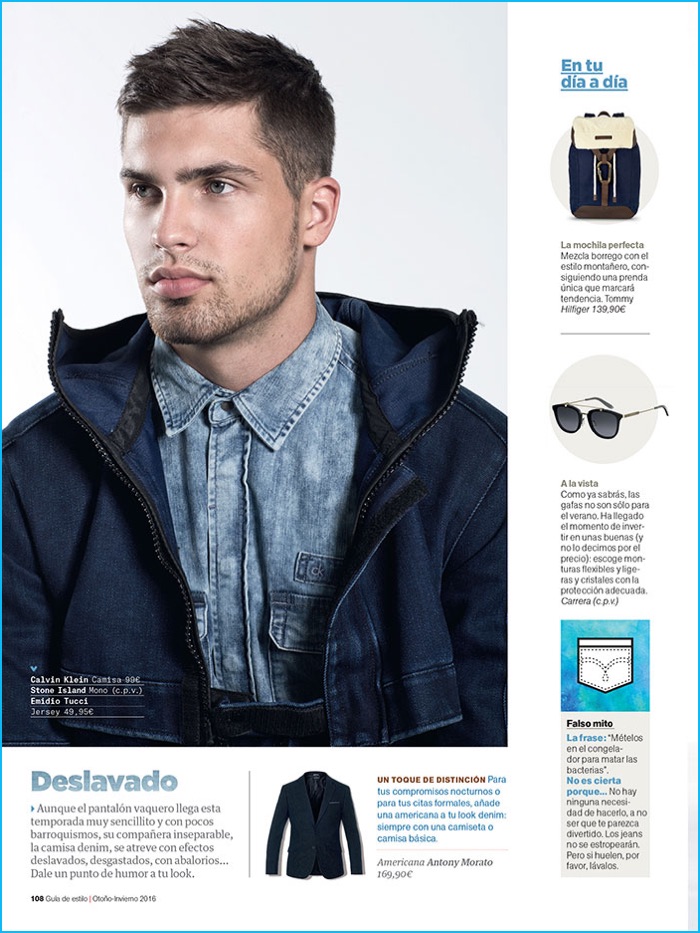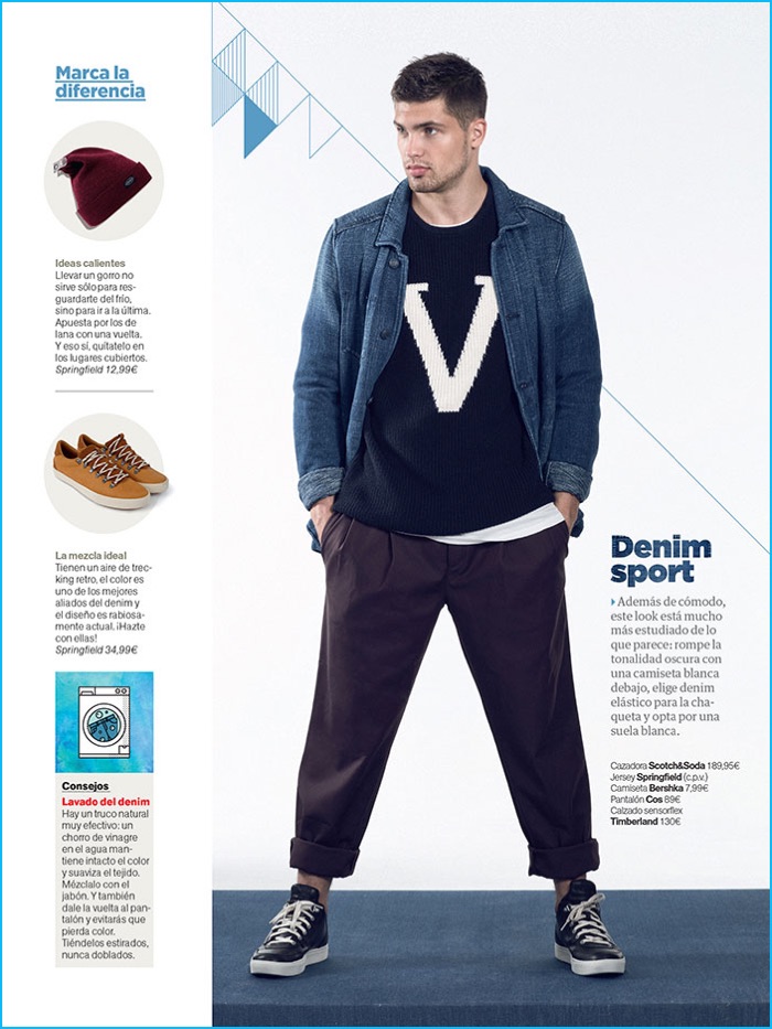 Miroslav Cech charms as Men’s Health Spain’s cover model for the month of October. The Soul Artist Management model hits the studio with photographer Martin Azumendi for the issue. Starring in a fashion editorial that champions everyday basics, Miroslav connects with stylist Anna Otero. Warming up to denim and indigo blues, Miroslav is captured in a relaxed wardrobe. The lineup of denim shirts, straight-fit pants, t-shirts, and more include brands such as Pepe Jeans, H&M, and Calvin Klein Jeans.