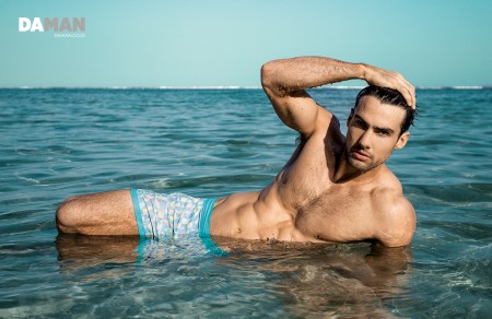 Da Man enlists Australian model Mitchell Wick for a picture-perfect getaway to Bali. Hitting the beach, Mitchell is photographed and styled by Ronald Liem. Sporting patterned swimwear, Mitchell models the latest styles from brand Teamm8.