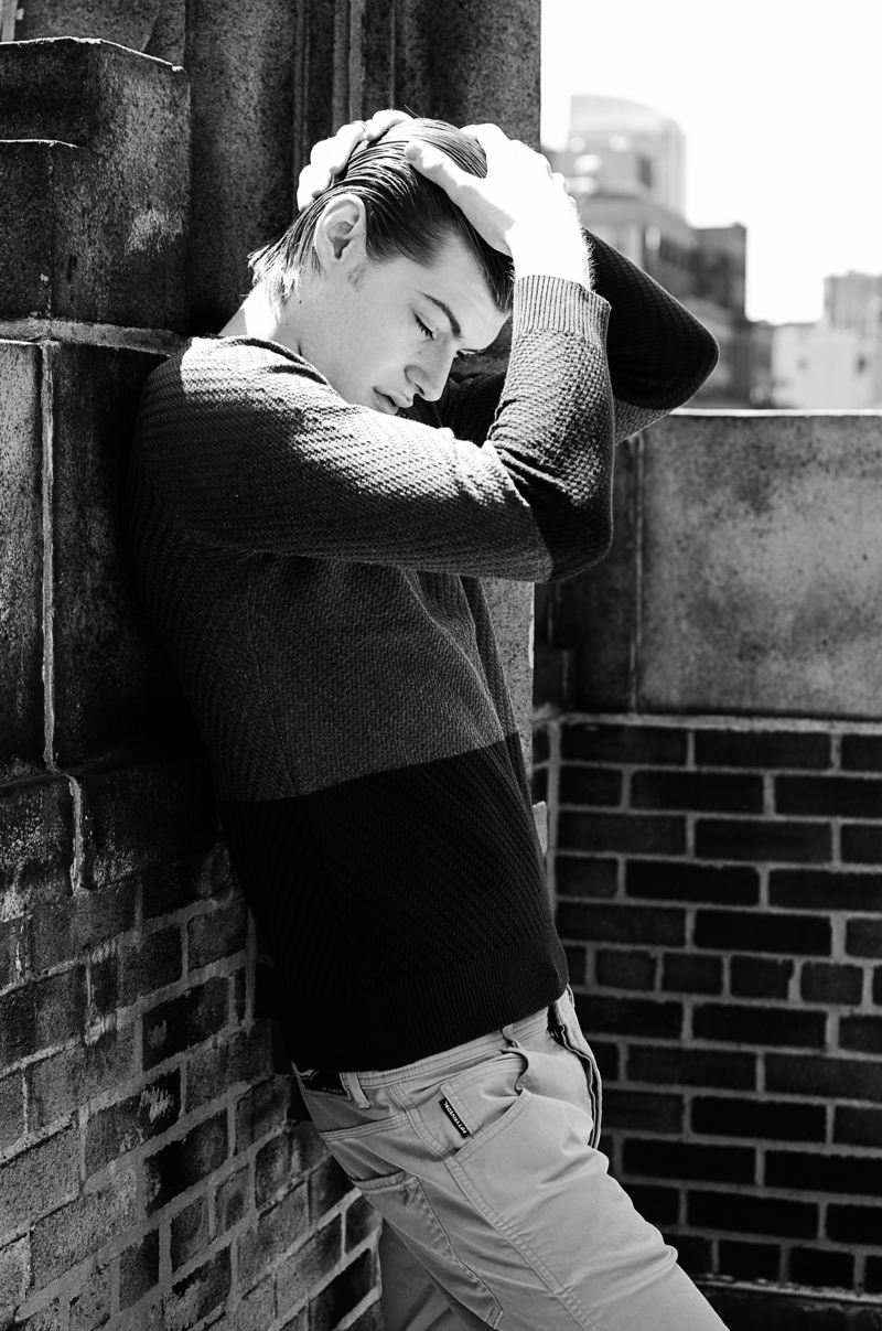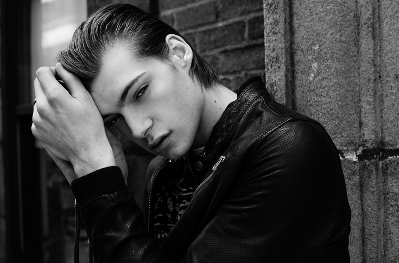 Introducing Douglas–ADAM model Douglas Cassidy is the latest new face to appear before the lens of photographer Danny Lang. Posing for casual photos, Douglas exudes a nonchalant attitude. Captured outdoors, the fresh face is at once comfortable in a contemporary wardrobe that includes a leather jacket, denim shorts and a slim-cut blazer, among other pieces.
