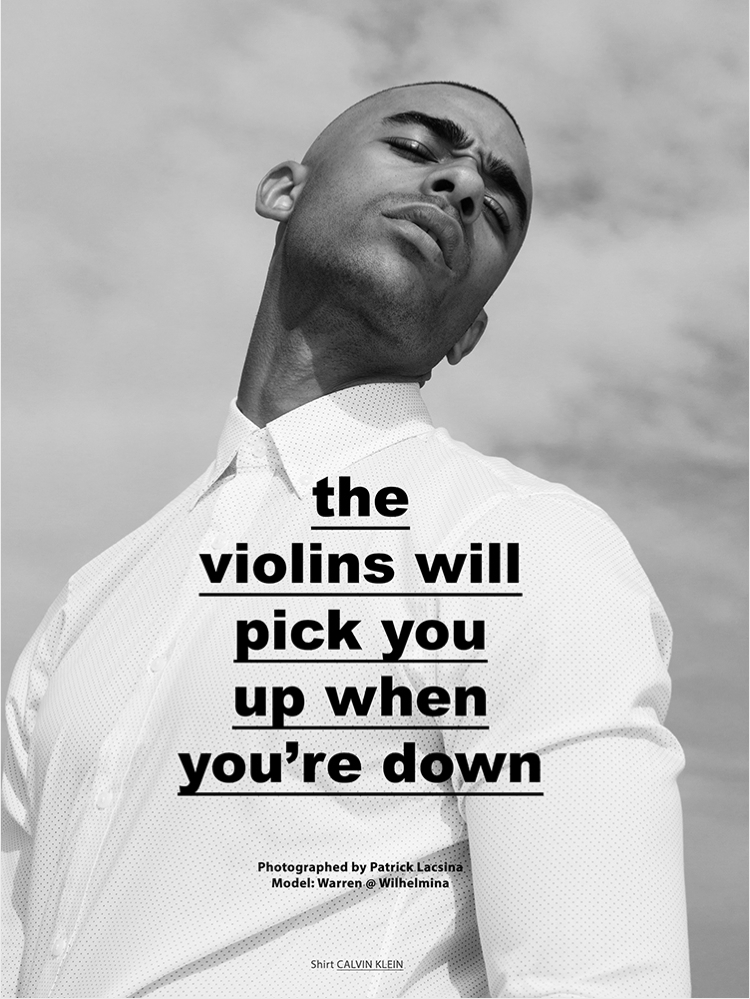 The Violins Will Pick You Up When You’re Down–Wilhelmina New York model Warren Philo updates his book with a new photo session by photographer Patrick Lacsina. Heading outdoors to pose for black & white images, Warren hits graceful lines as he models a contemporary wardrobe that includes both casual and tailored essentials.