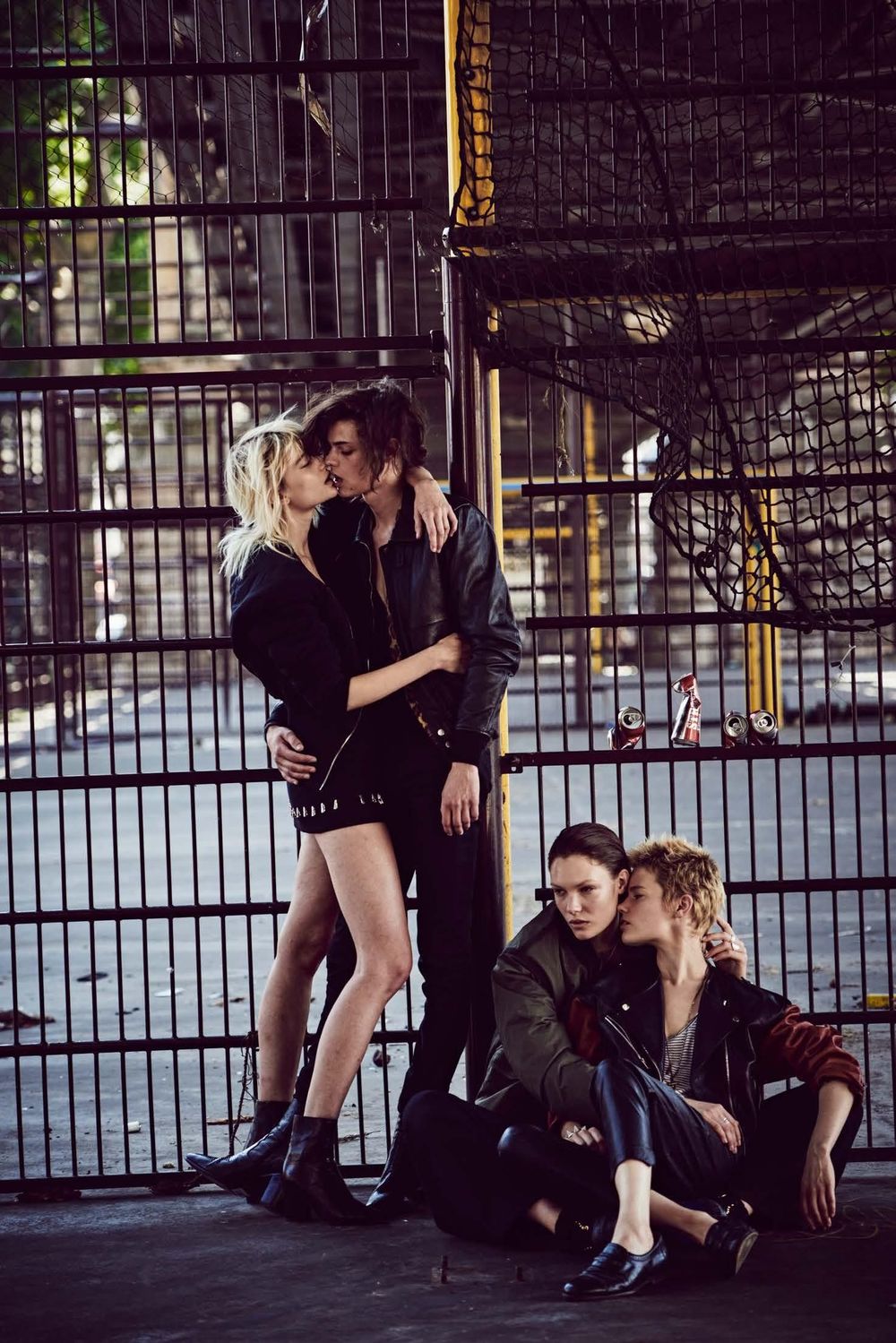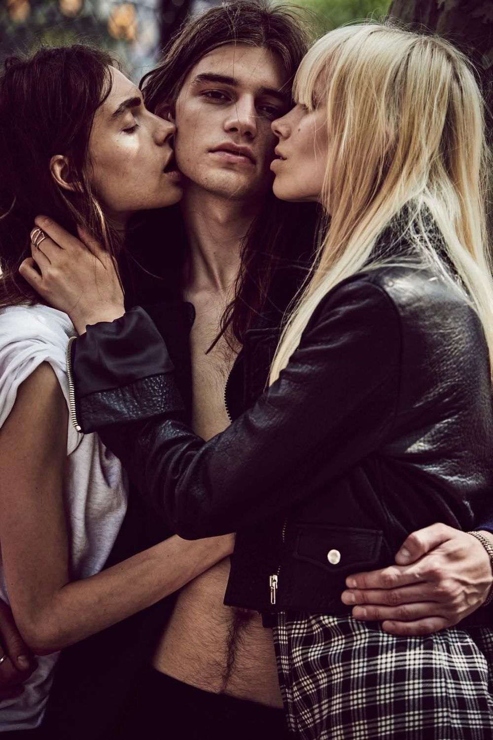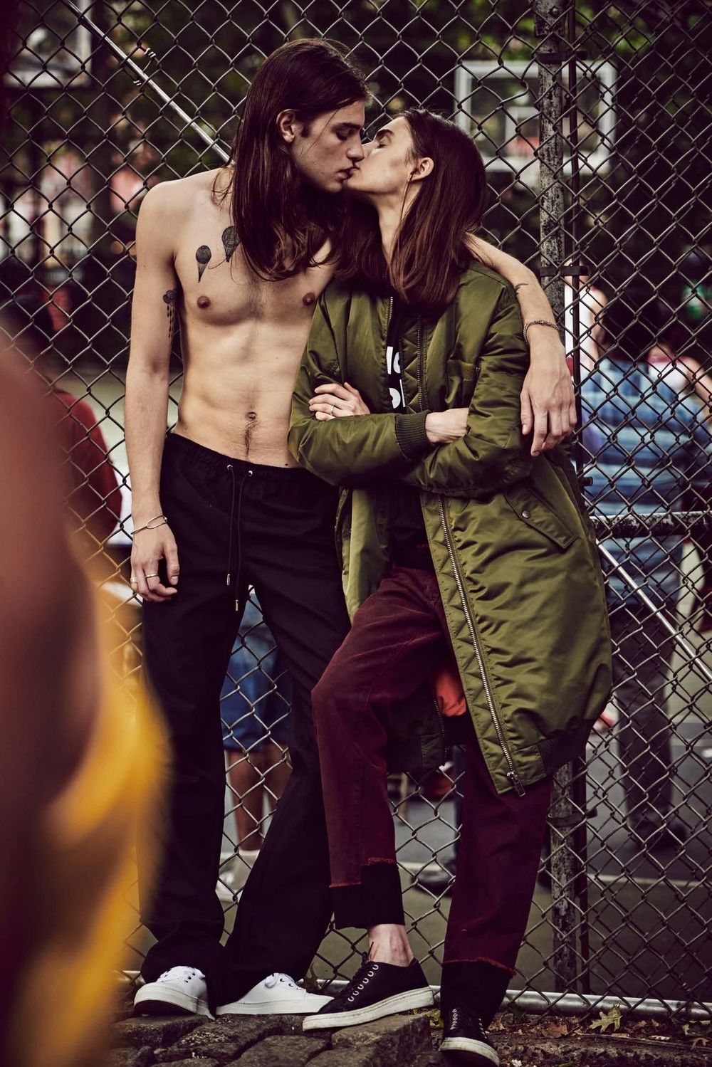 Boys kiss girls and boys kiss boys as DSection celebrates love with its fall 2015 issue. Nicolas Ripoll, Gosh Sobianin, Isak Rindom, Sally Jonsson, Veronika Vilim and Erin Mommsen are among the models to appear in the charming fashion editorial. Photographed by the talented Matthew Brookes, the models are styled by Christian Stroble. Taking over the streets of New York in eclectic, youthful ensembles, the models are fearless in their expressions of love. Drawing androgynous lines, many fun layers indulge a genderless perspective with shearling, leather and plaid making the stylish cut.