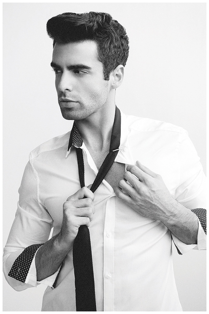 Photographer Eric Doolin and stylist Meghan Hofferth come together for a Fifty Shades of Grey inspired shoot. The stark black & white outing stars model Edward Frame. Posing against a clean white background, Edward is pictured in essential staples from Nordstrom, H&M and more. / Grooming by Nichole Gustafson. Assistance by Felicia Lasala.