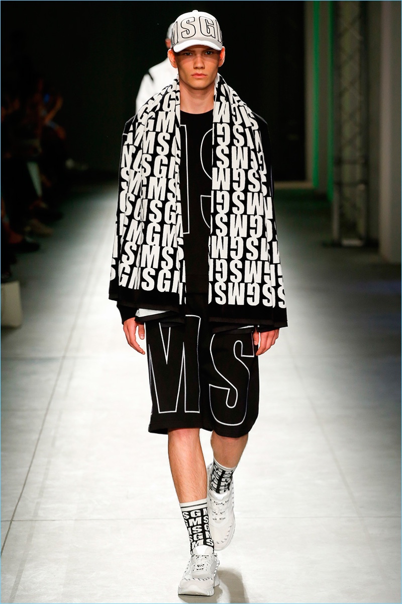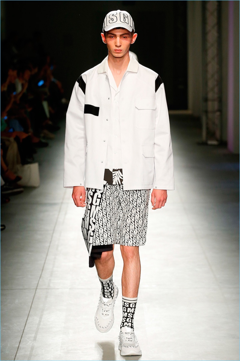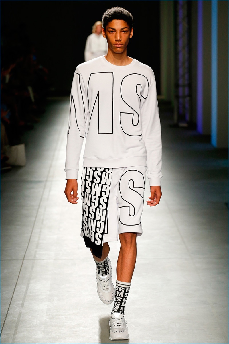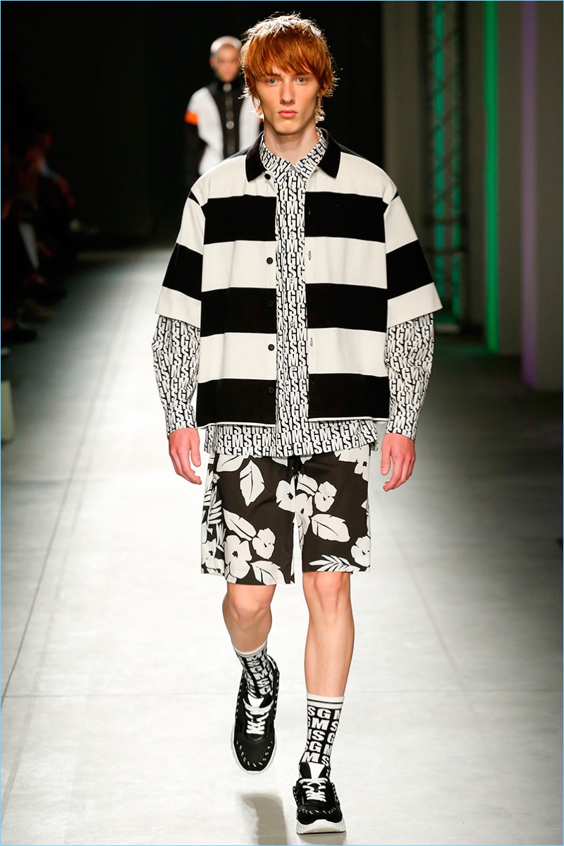 Italian fashion brand MSGM serves up a fun time for its spring-summer 2018 collection. Creative director Massimo Giorgetti goes bold with a parade of prints and graphics. Not one to shy away from a youthful hand, Giorgetti delivers relaxed silhouettes with a skater meets surfer vibe.