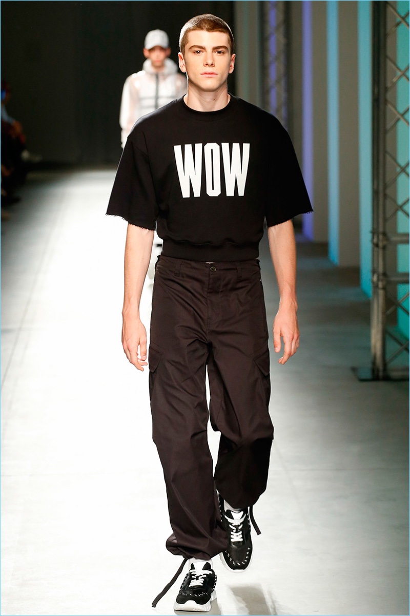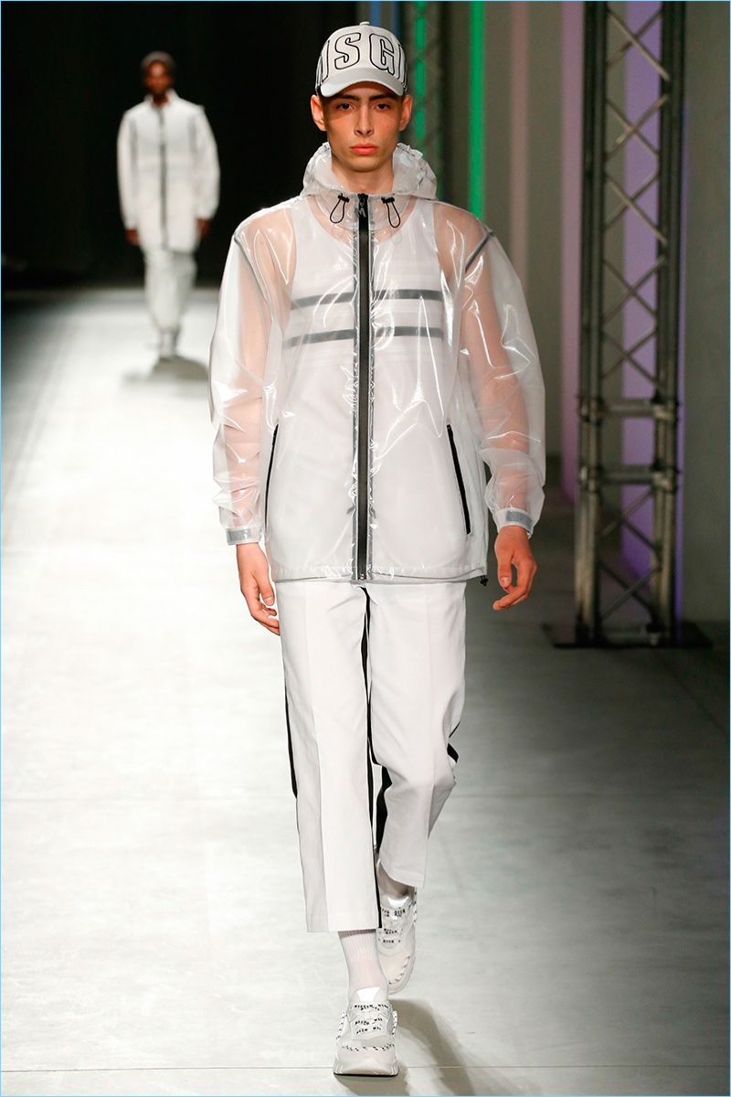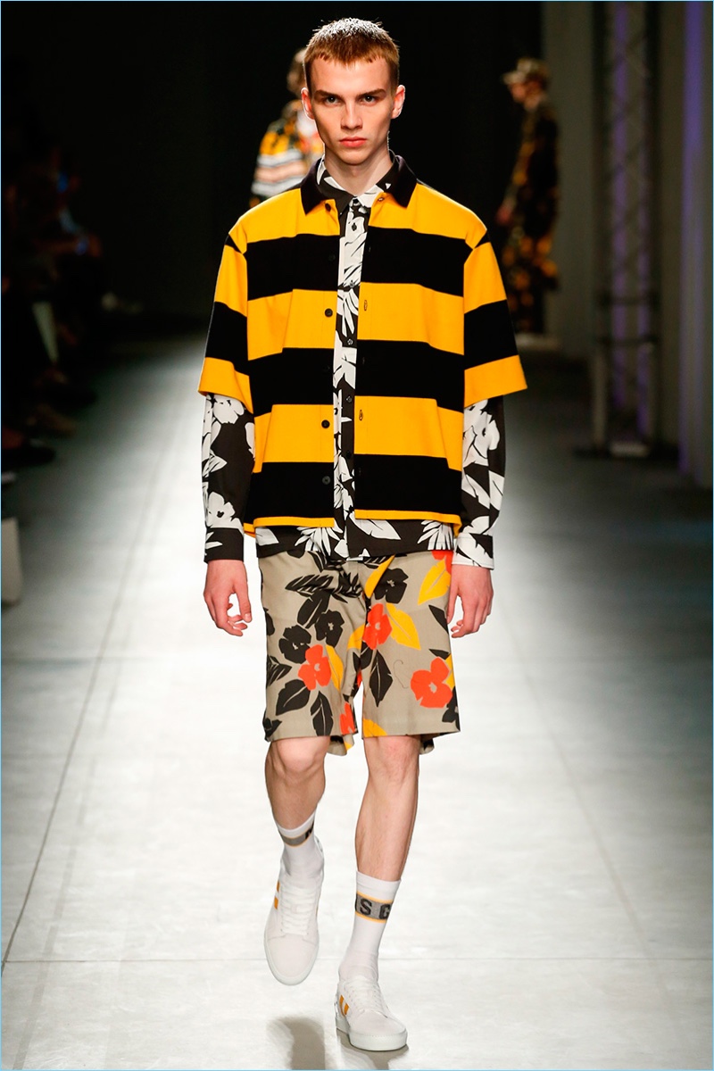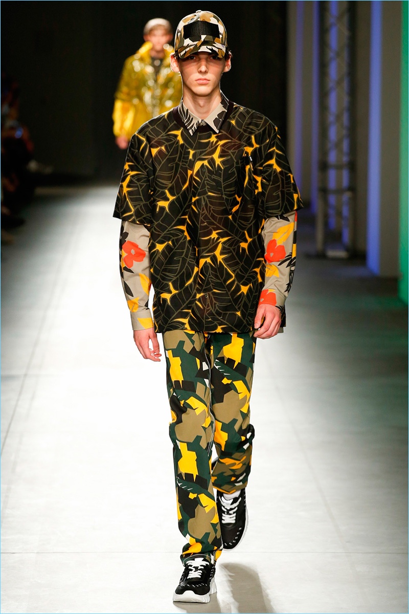 Italian fashion brand MSGM serves up a fun time for its spring-summer 2018 collection. Creative director Massimo Giorgetti goes bold with a parade of prints and graphics. Not one to shy away from a youthful hand, Giorgetti delivers relaxed silhouettes with a skater meets surfer vibe.
