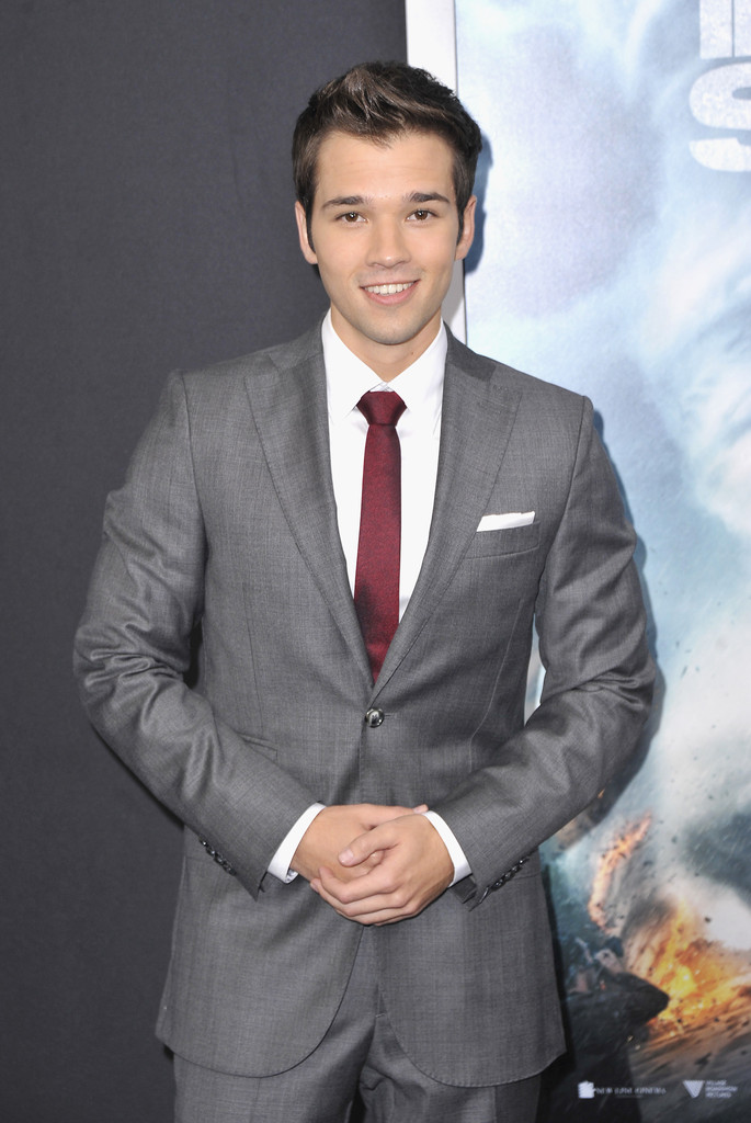 Classic Combination-Attending the New York City premiere of ‘Into the Storm’ at the AMC Lincoln Square Theater yesterday, actor Nathan Kress impressed with a classic color combination. Wearing a sharp fitted two-button suit from J.Lindeberg, Kress matched a cool somber gray with a rich pop of burgundy, thanks to a simple slim tie.