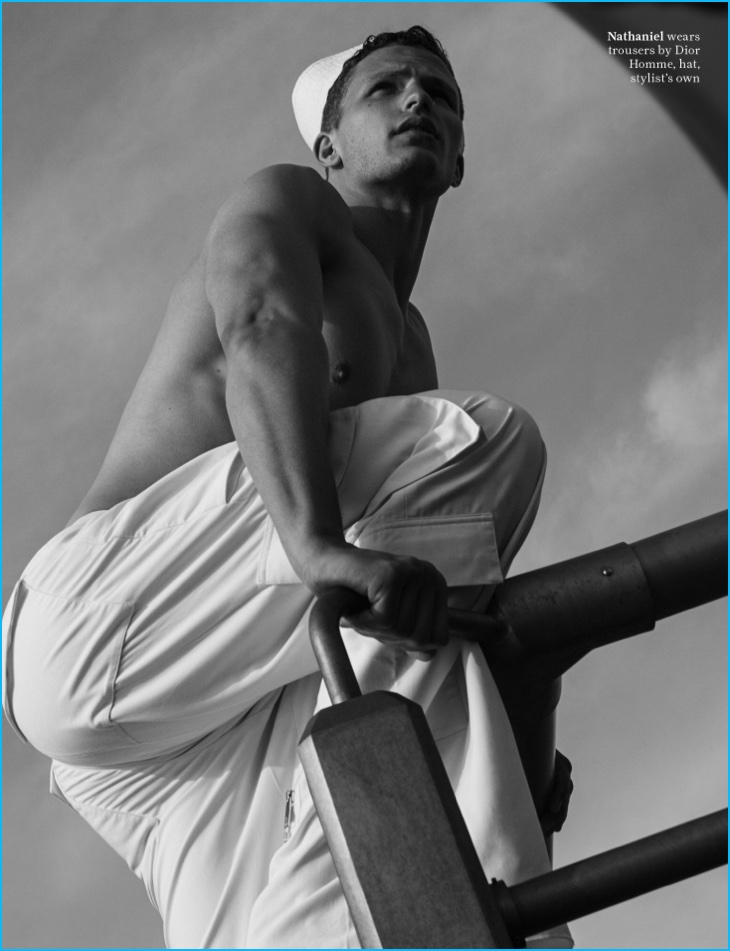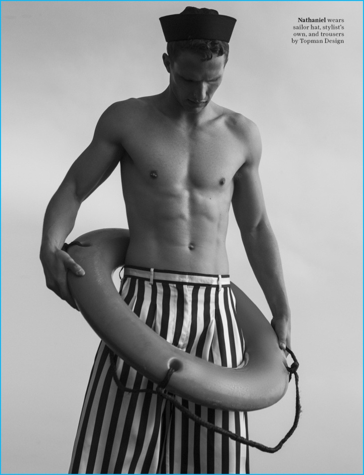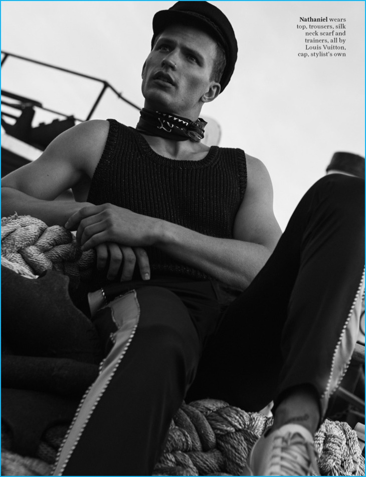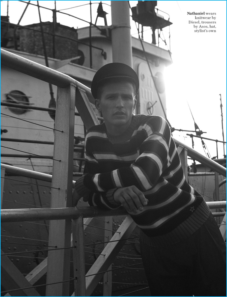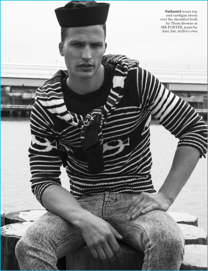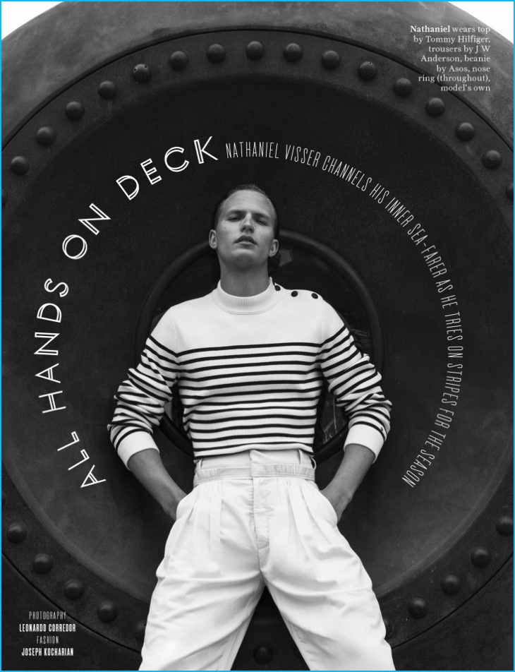 Australian model Nathaniel Visser tackles nautical style for a new spread featured in Attitude magazine. Photographed by Leonardo Corredor, Nathaniel embraces a sailor flair with a wardrobe styled by Joseph Kocharian. Labels such as Dior Homme, Balmain, AMI and Alexander McQueen contribute to the outing. Nautical stripes, relaxed denim, neck scarves and loose outerwear bring the editorial full circle.