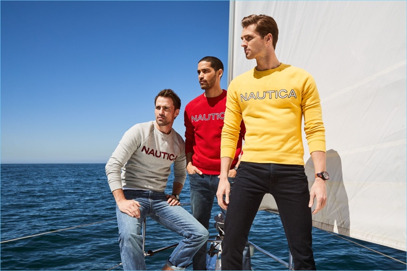 Nautica embraces a sense of adventure with its fall-winter 2018 campaign. The brand takes to the coast for a trip that captures the spirit of the outdoors and beautiful new cities. Models Edward Wilding and Daniel Pimentel reunite with the label after appearing in its spring advertising. The outing features a timeless wardrobe of Nautica essentials.
