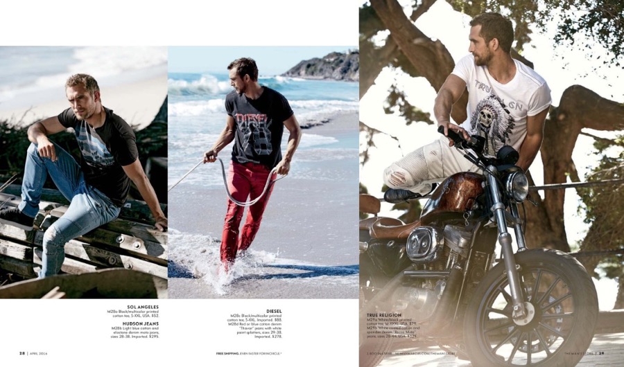 Designer fashions are filtered through a maritime motif for a new style shoot from Neiman Marcus. The luxury retailer enlists the help of top British model Will Chalker for the occasion. Heading out to sea and enjoying a warm day on the beach, Will showcases essential menswear, currently available at Neiman Marcus. From slim-cut denim jeans and sophisticated bomber jackets to lightweight sweaters, Neiman Marcus delivers quite the selection for a chic spin on nautical style.