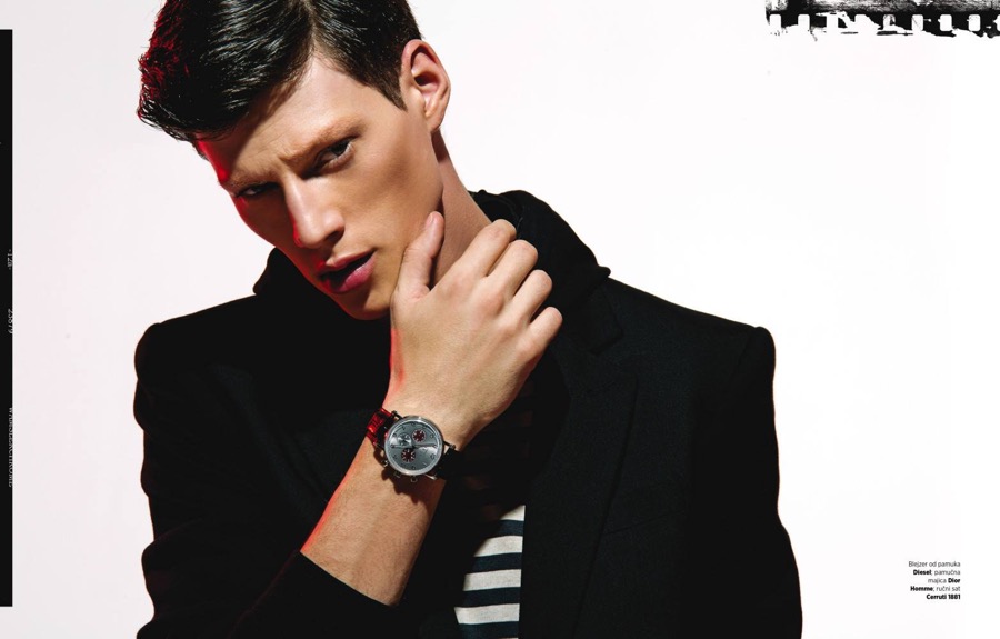 Nemanja Maksic wears fashions from Diesel, Dior Homme and Cerruti 1881.