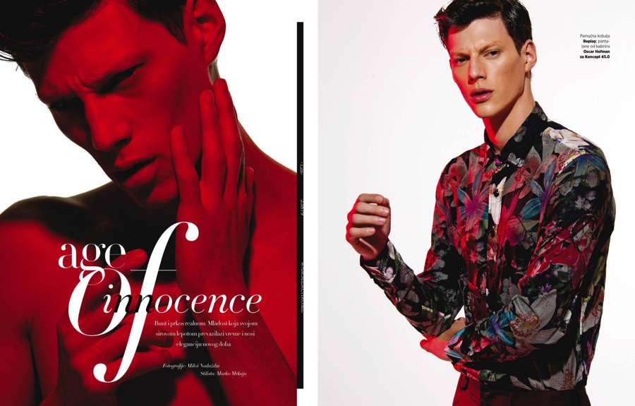 Sporting a floral print shirt from Italian brand Replay, model Nemanja Maksic covers the April 2016 issue of Harper’s Bazaar Man Serbia. Starring in an accompanying photo shoot entitled Age of Innocence, Nemanja is photographed by Milos Nadazdin. Wearing sleek fashions from the spring-summer 2016 collection, Nemanja is styled by Marko Mrkaja in brands such as Diesel and Dior Homme.