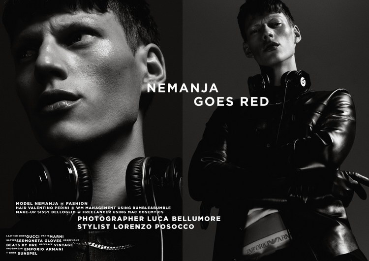 Nemanja Goes Red–Photographer Luca Bellumore captures a different side of model Nemanja Maksic, shooting the June cover story of RedMilk magazine. Embracing a confident and sporty persona, Nemanja gets a wardrobe update courtesy of stylist Lorenzo Posocco. Mixing sporty labels such as Adidas with luxury brands that include Marni and Hermes, the stylish results are magical.