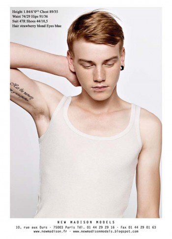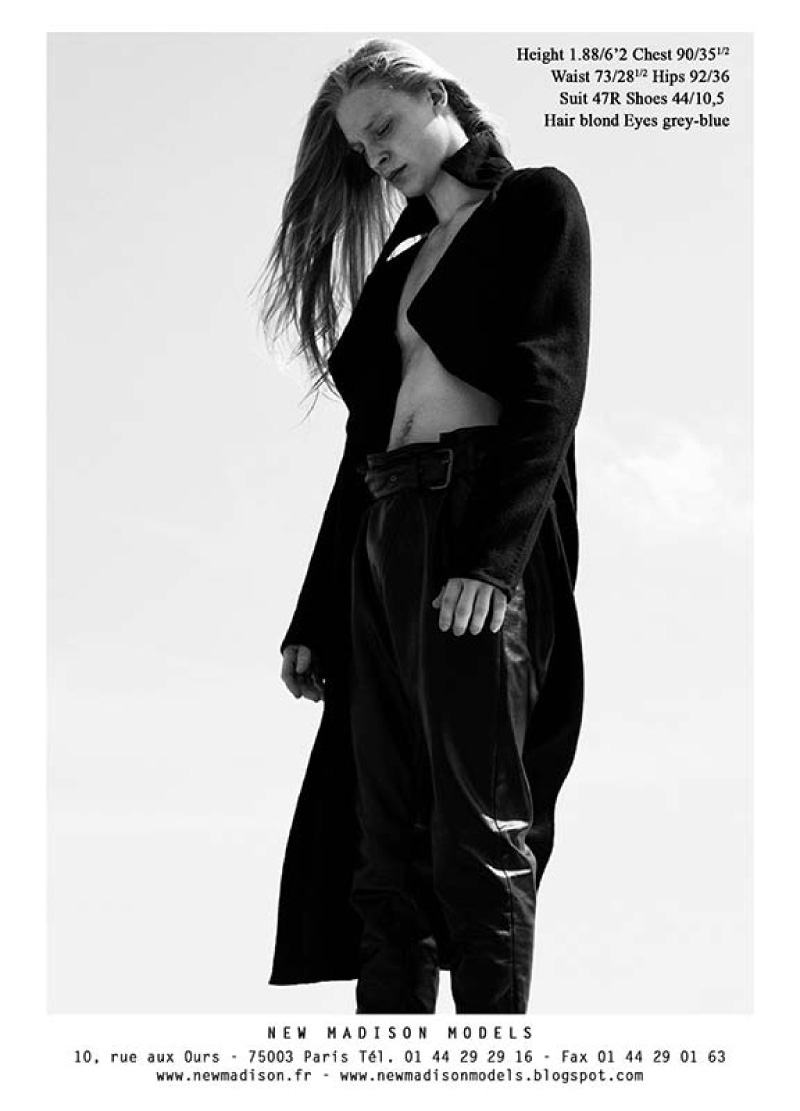 New Madison–Bursting at the seams with fashion’s favorite boys, New Madison’s show package ensures that the catwalks of Paris will be covered. From strong classic faces such as Joan Mirangels or the charm of Alex Dunstan to runway regulars such as Patrick Kafka or bright new star Simon Sabbah, New Madison has the bases covered. In the up and comer category, New Madison boasts Alex Michels, Alexander Ferrario, Martin Beranek and others.